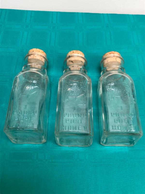 Three Honey Acres 1-lb Honey Jars w. Corks