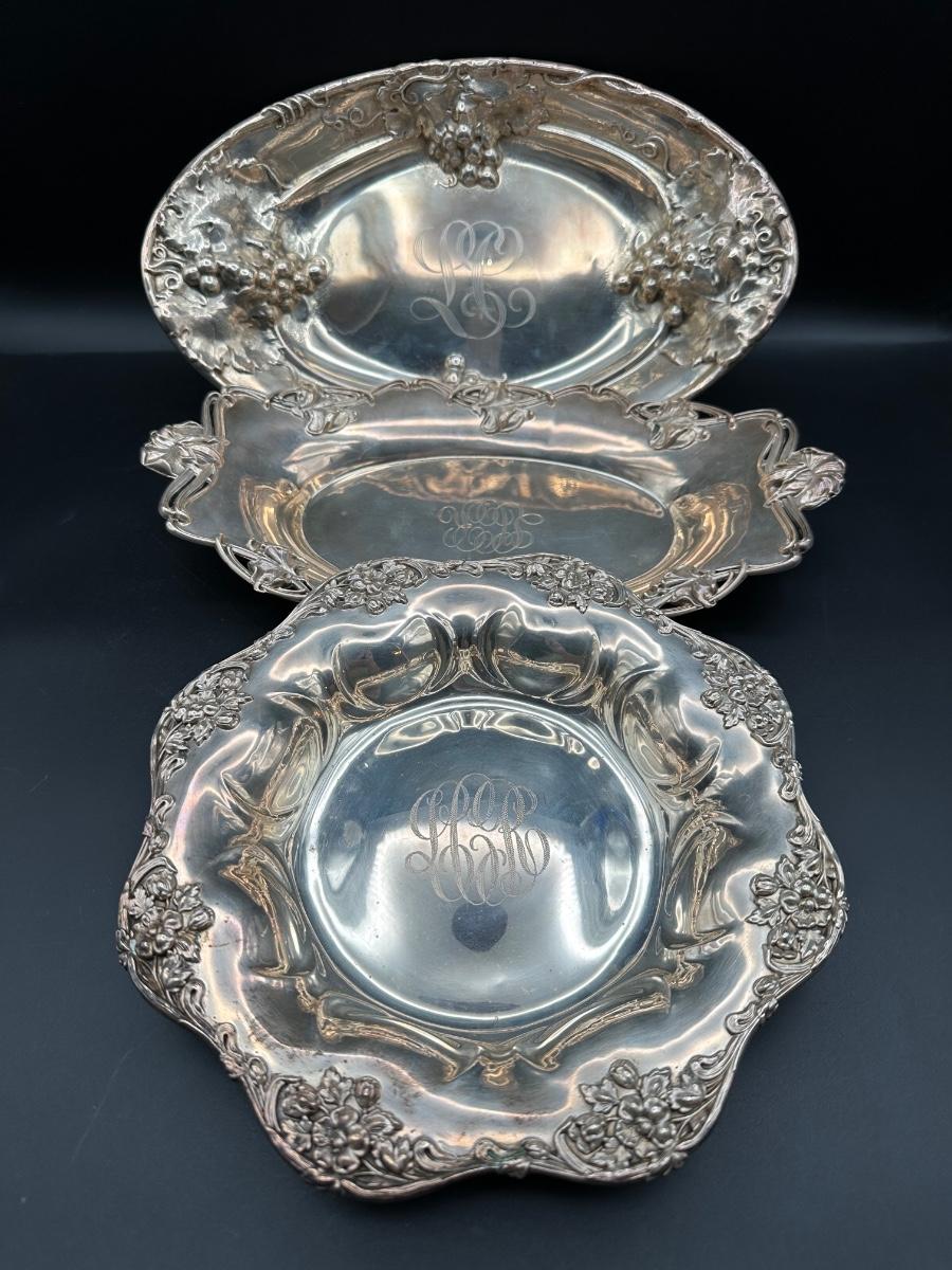 Set of 3 Ornate Sterling Serving Bowls with Monogram