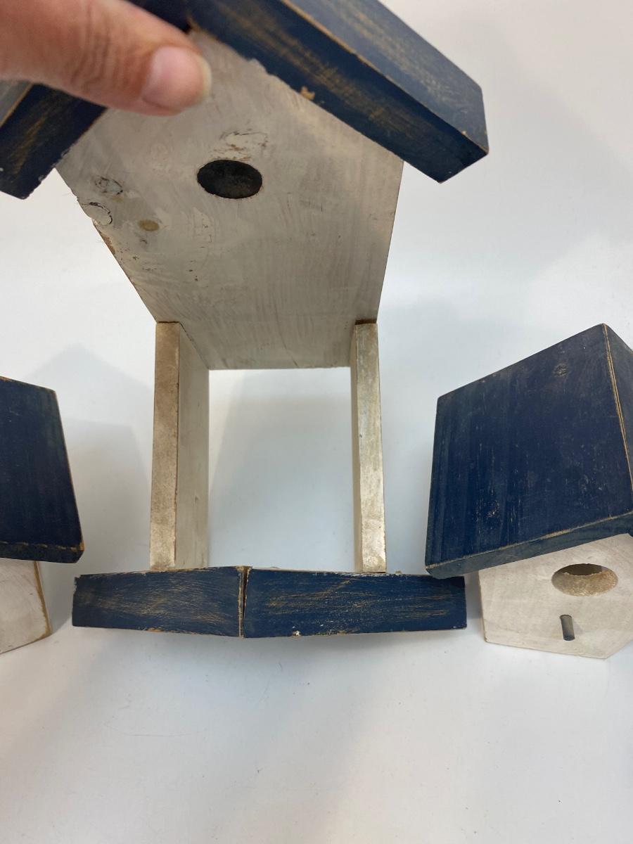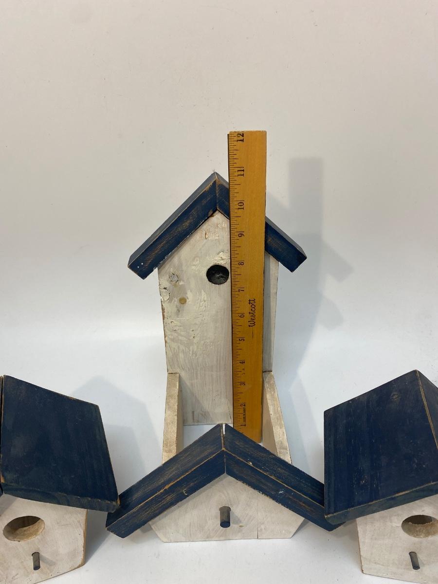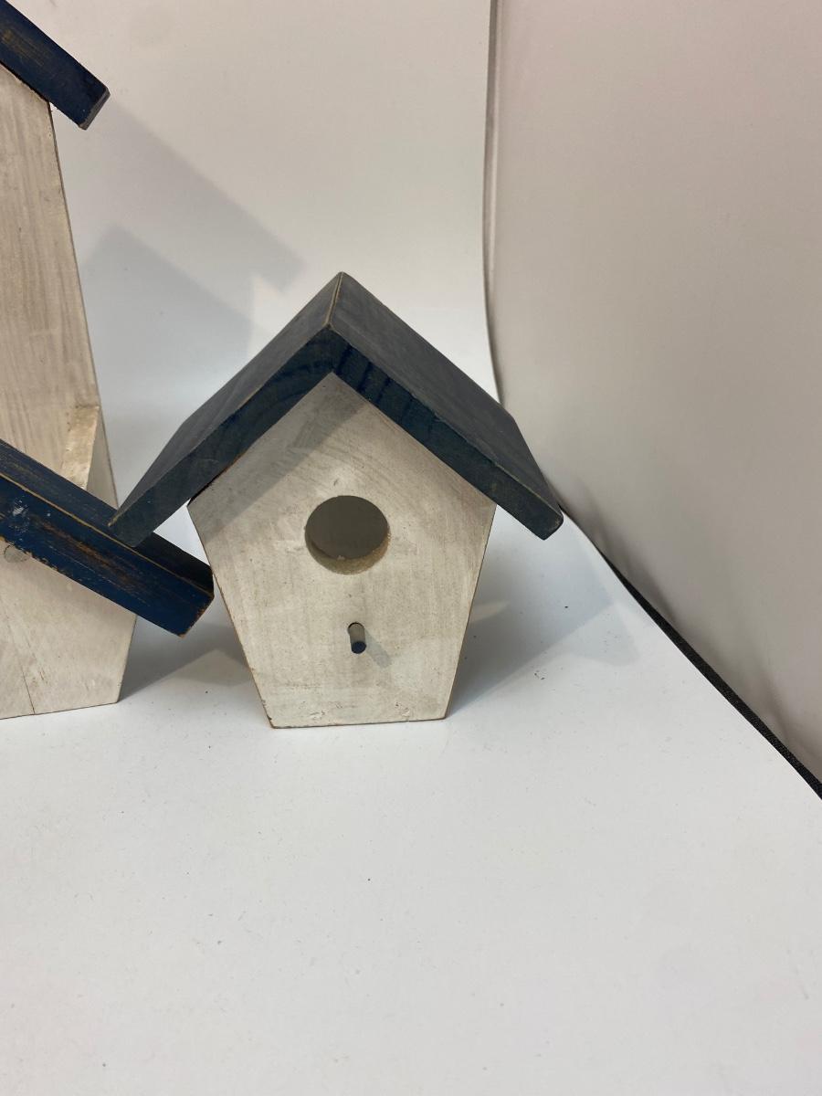 Set of 3 Painted Wood Bird Houses Garden Yard Art