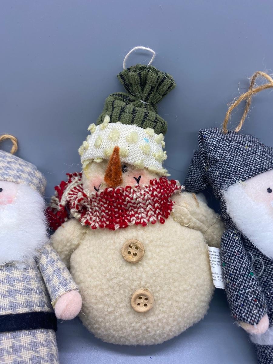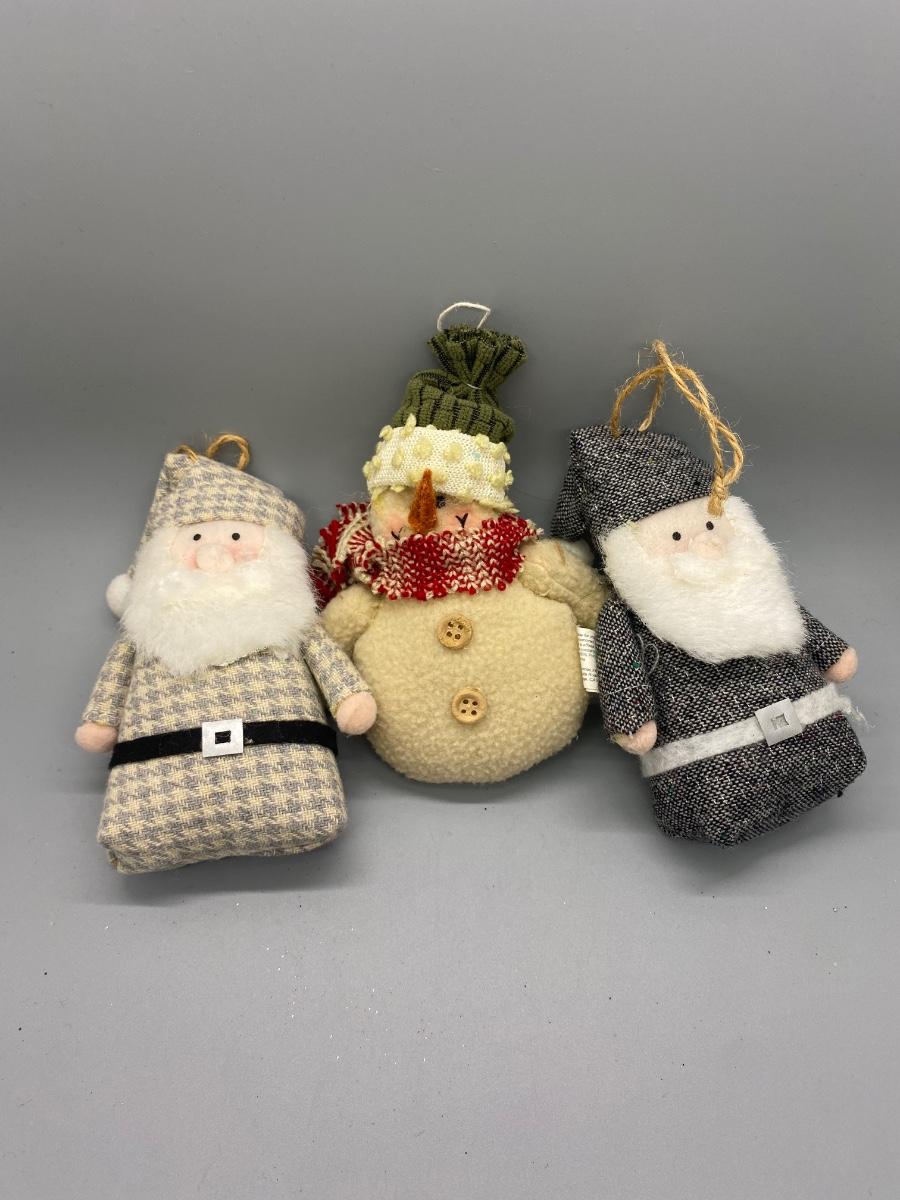 Set of 3 plush Christmas holiday ornaments. Good condition.