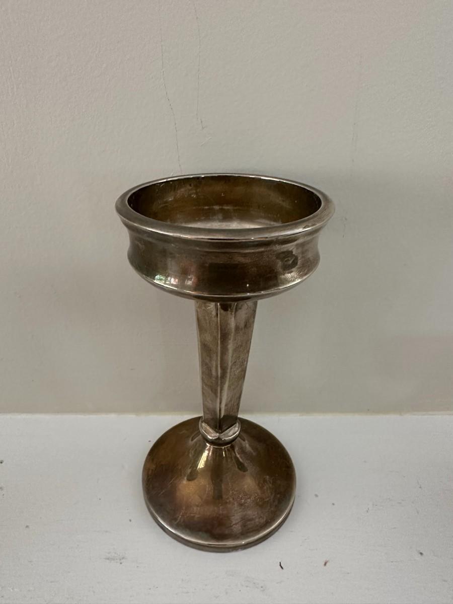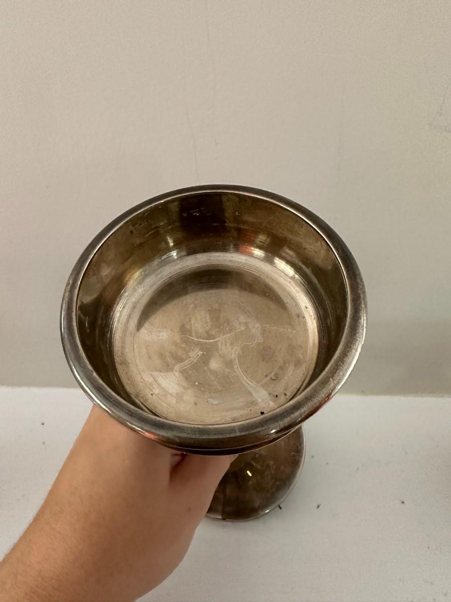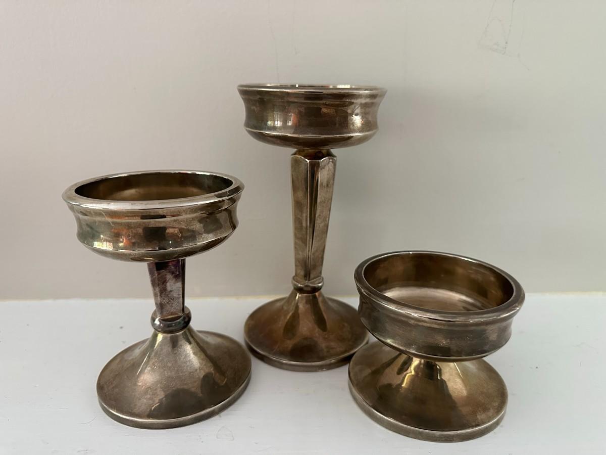 Silver-tone pillar holders measure 7"h, 5"h, 3"h