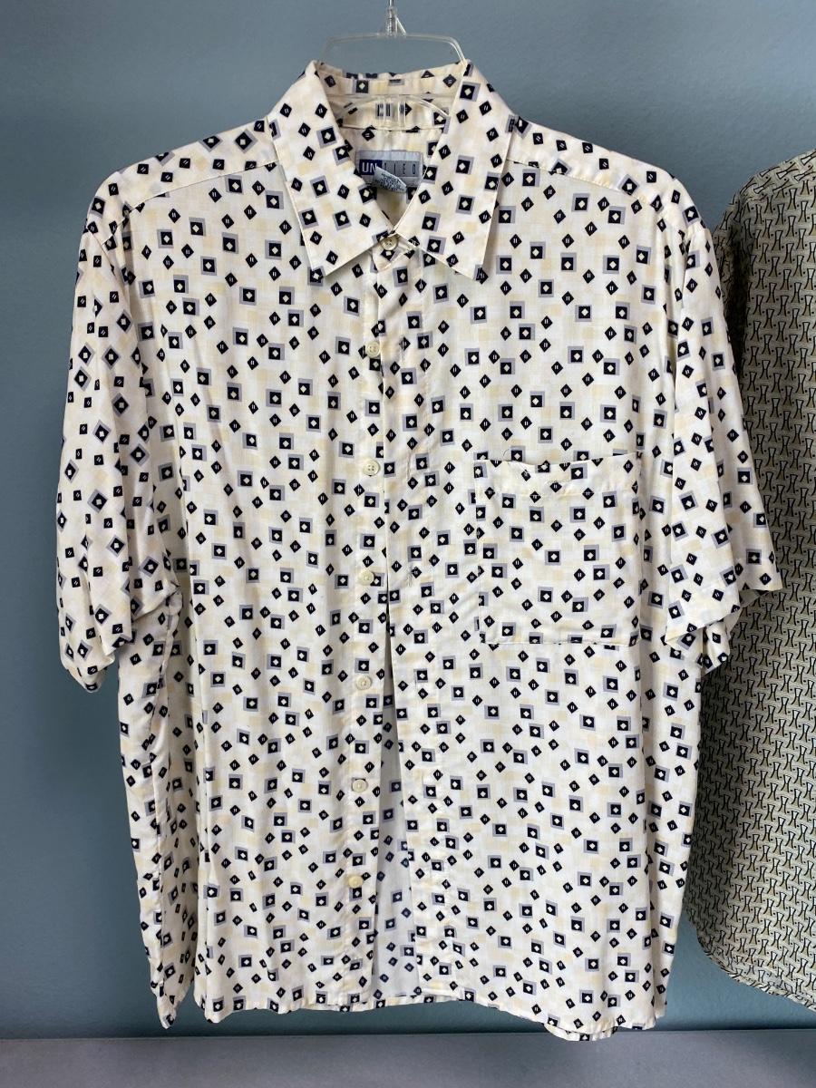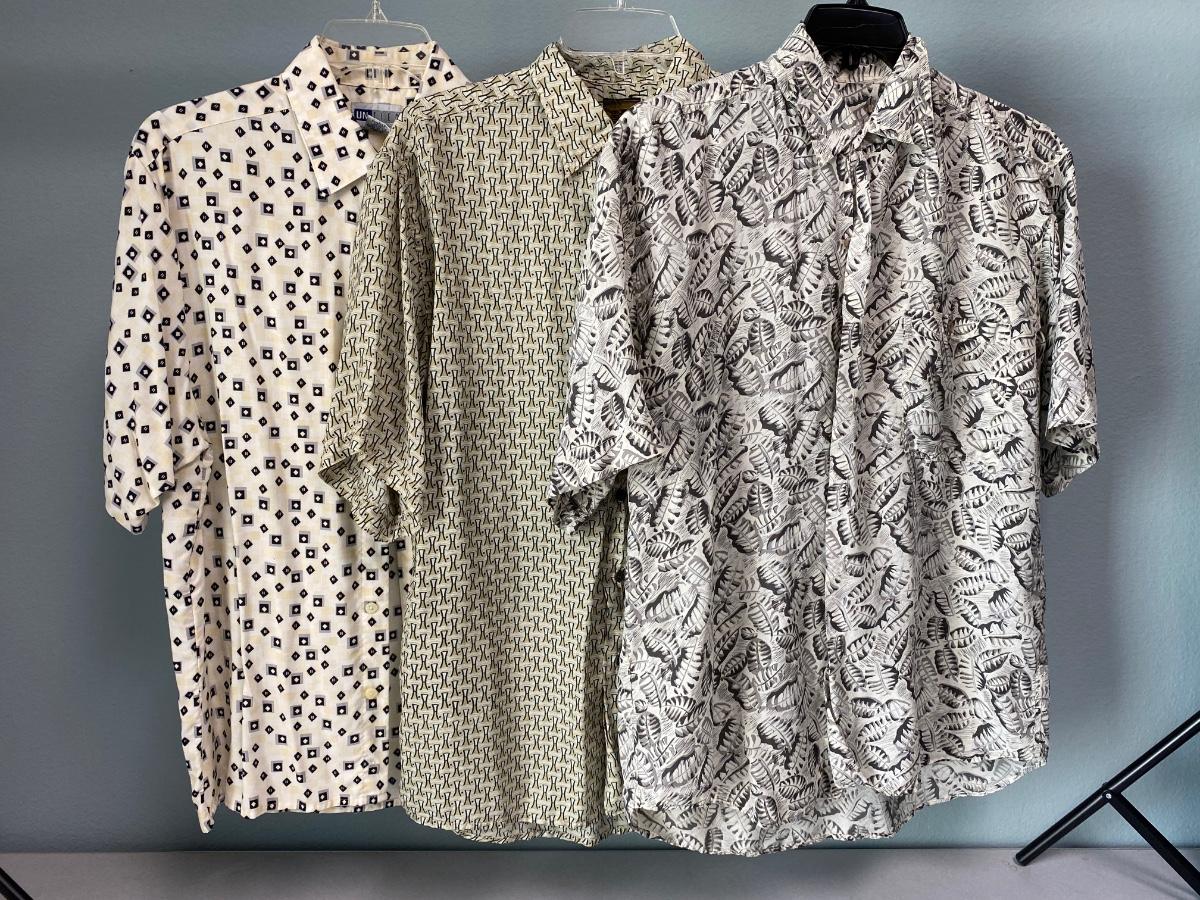 Set of 3 Retro Silk Button Front Short Sleeve Men's Shirts. Size tags have been removed, guessing medium. In good condition.
