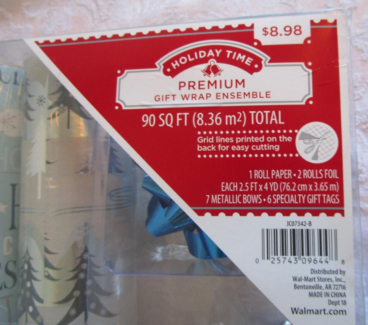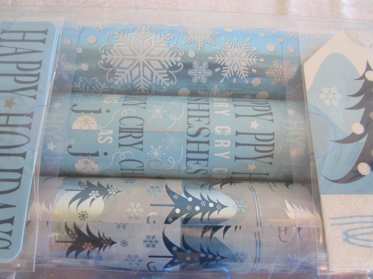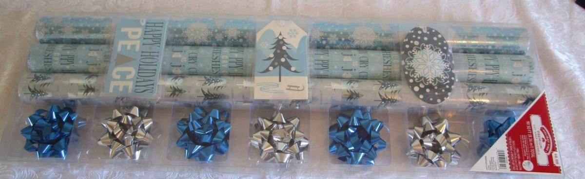 Set of 3 rolls Christmas gift wrap, 6 bows, and gift tags