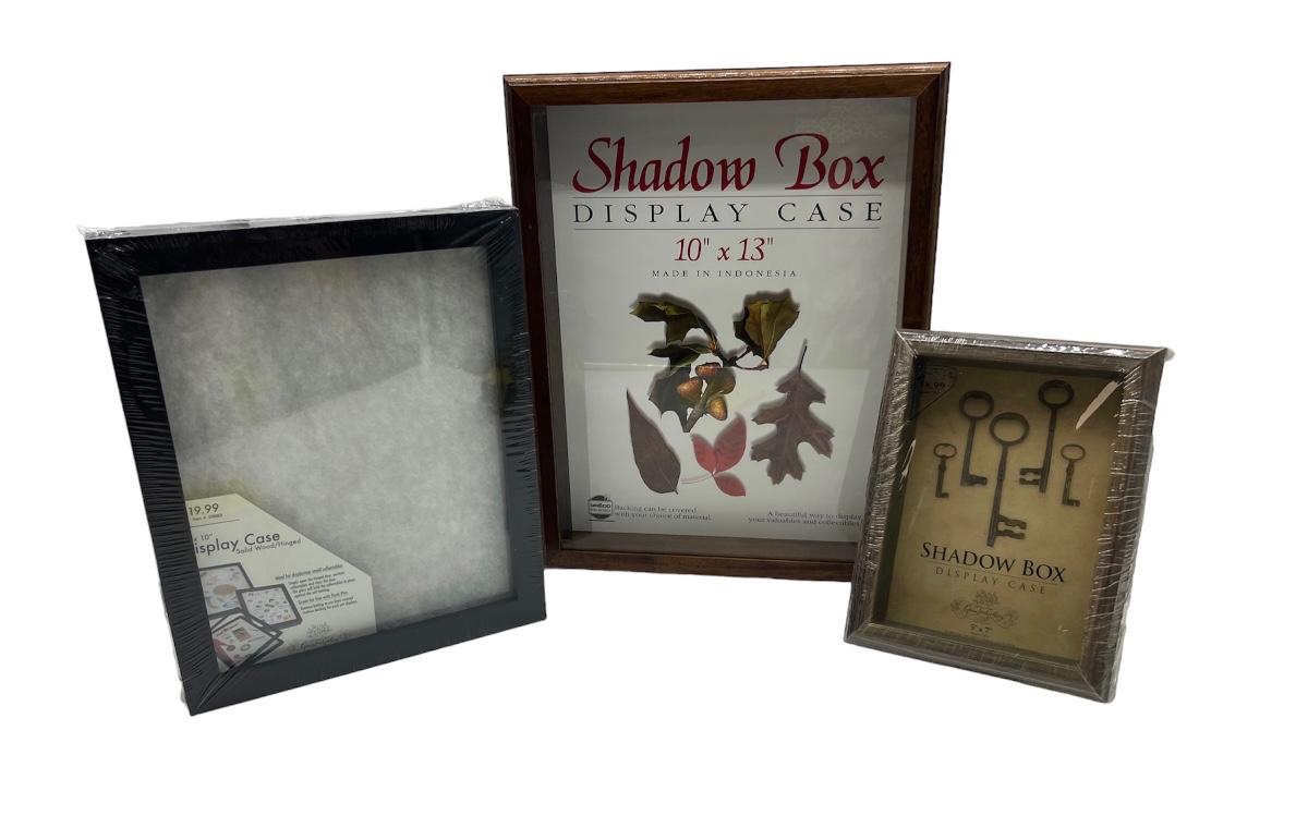 Three shadow boxes largest 10x13. Medium 8x10 and smallest 5x7.