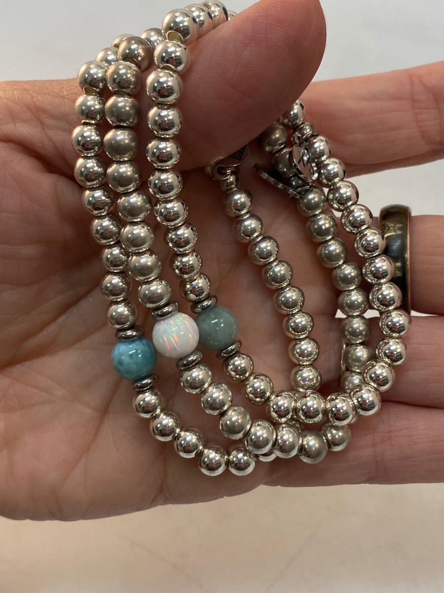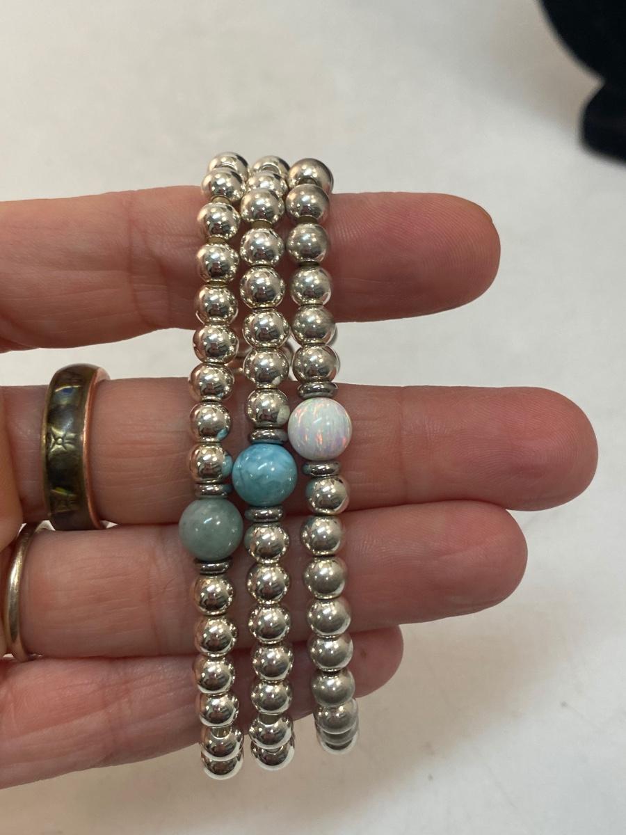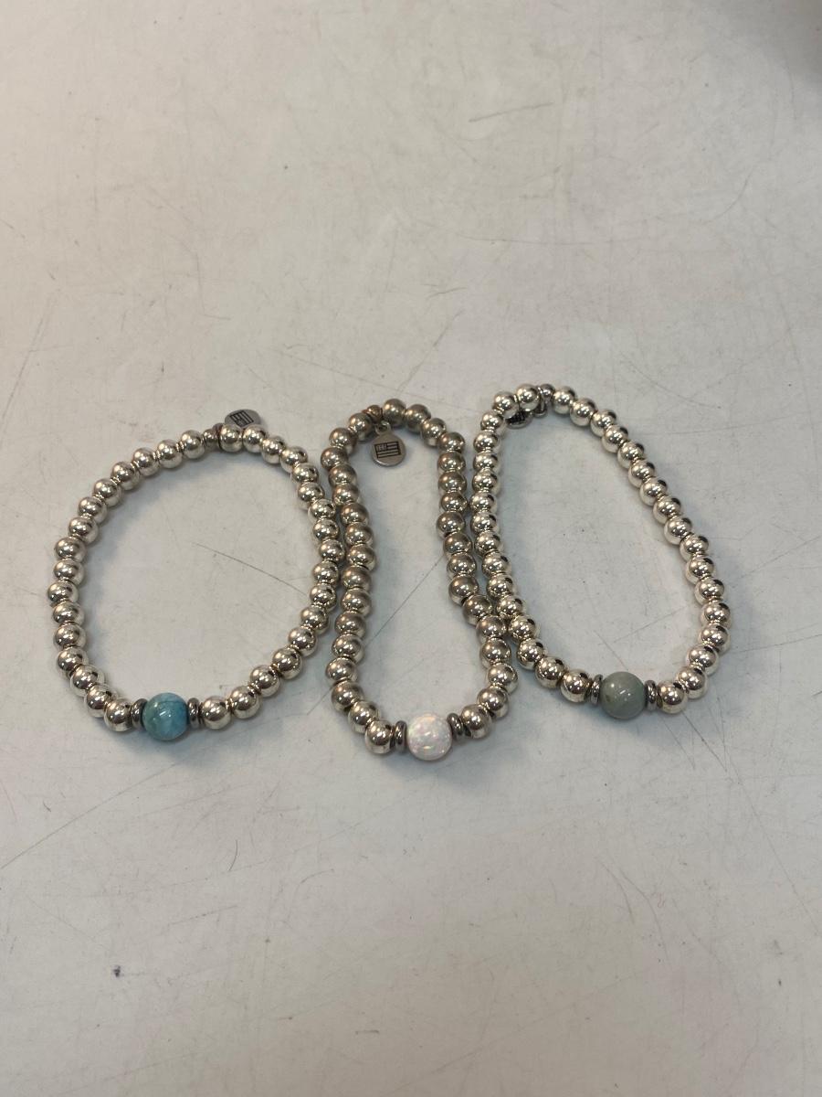 Set of 3 Silver Tone Stone Bead Stretch Bracelets. Not very stretchy, just a little.