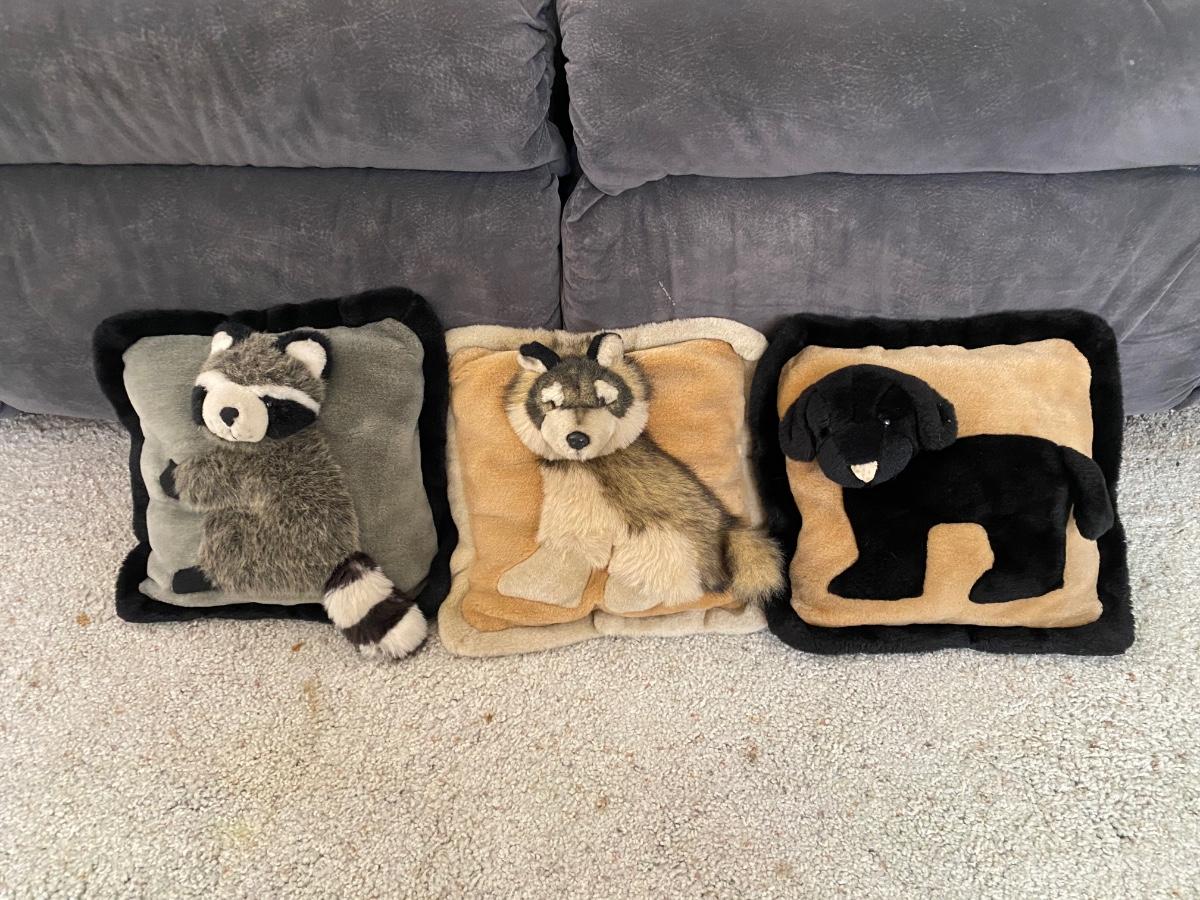 Set of 3 Small Animal Plush Front Accent Pillows. Good condition.