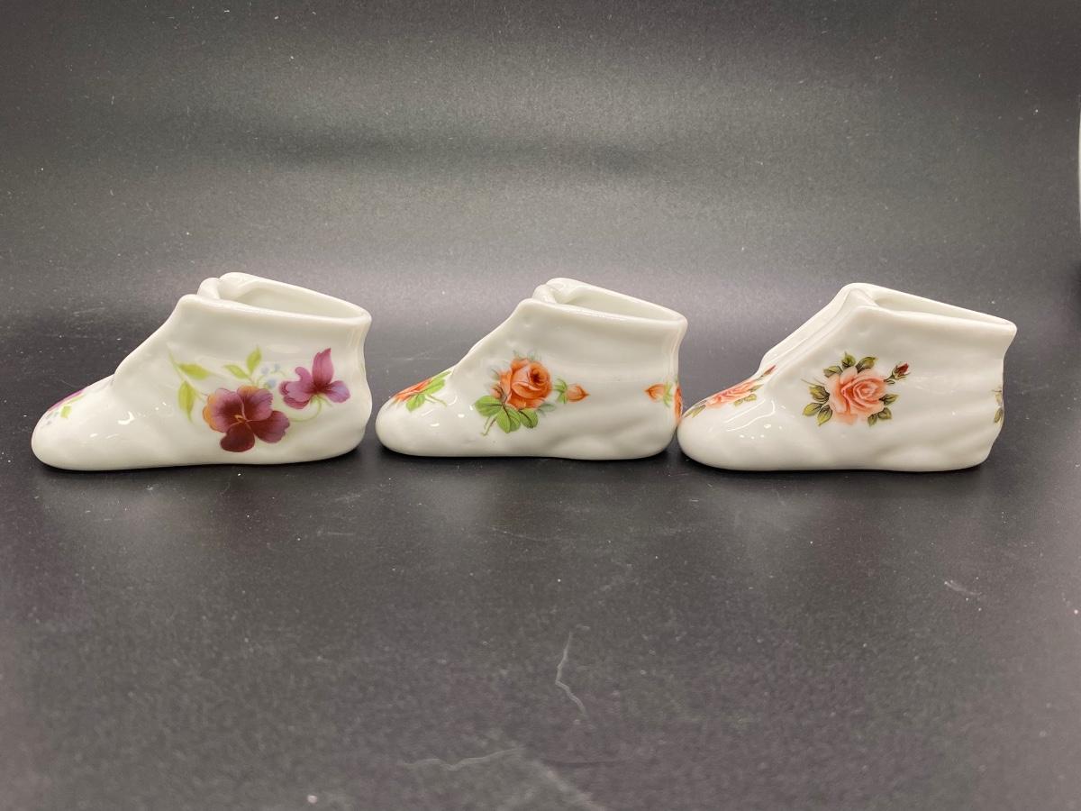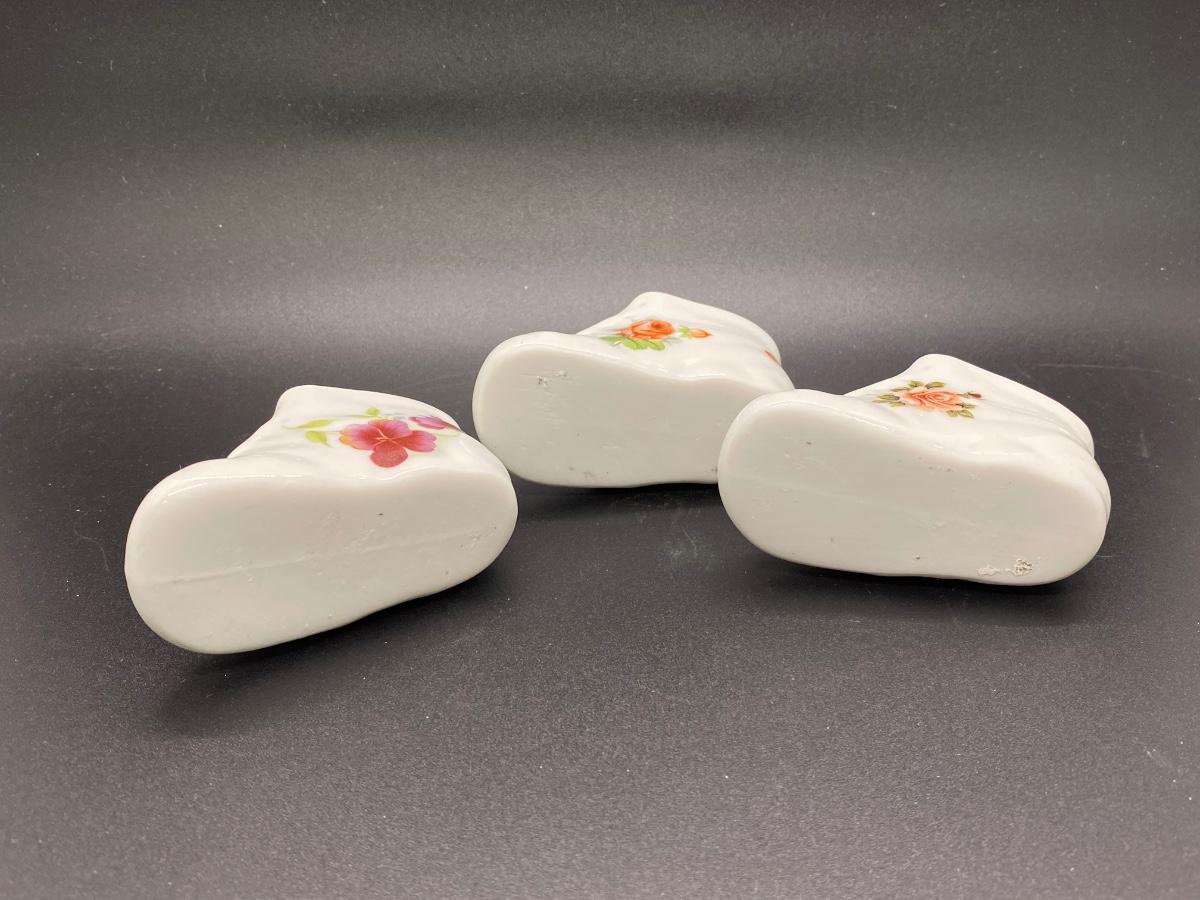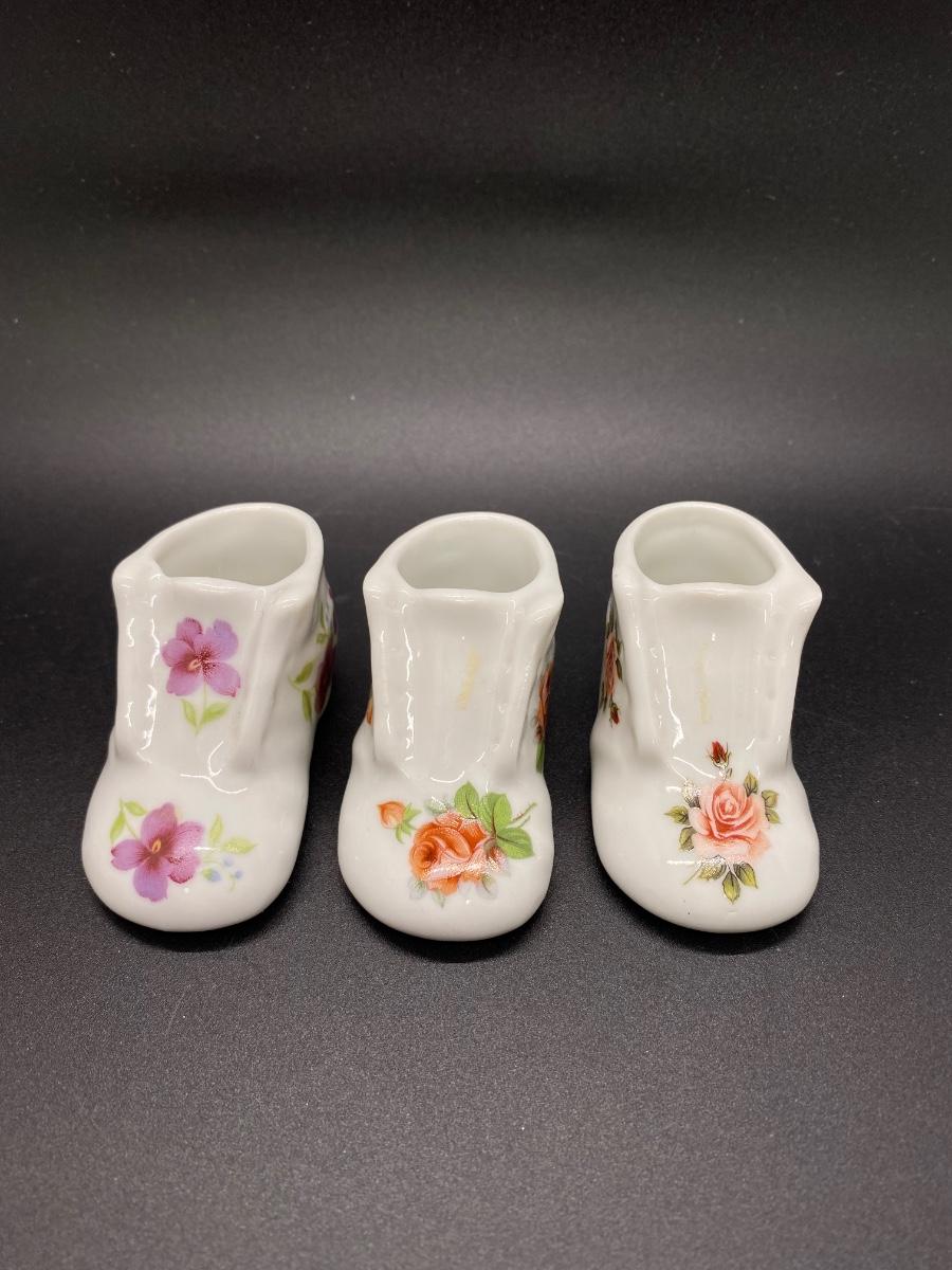 Set of 3 Small Ceramic Porcelain Baby Shoes with Flowers