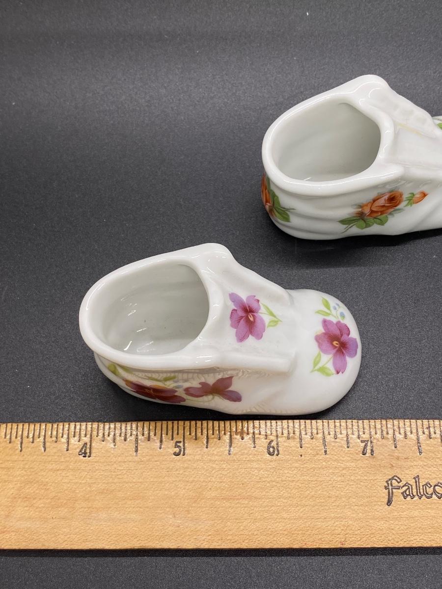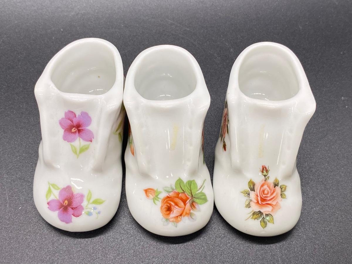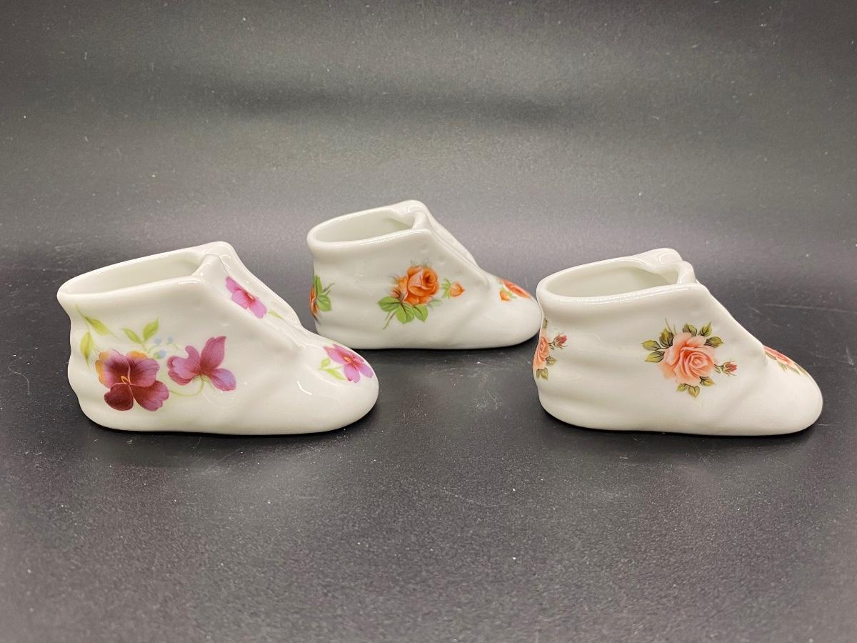 Set of 3 Small Ceramic Porcelain Baby Shoes with Flowers
