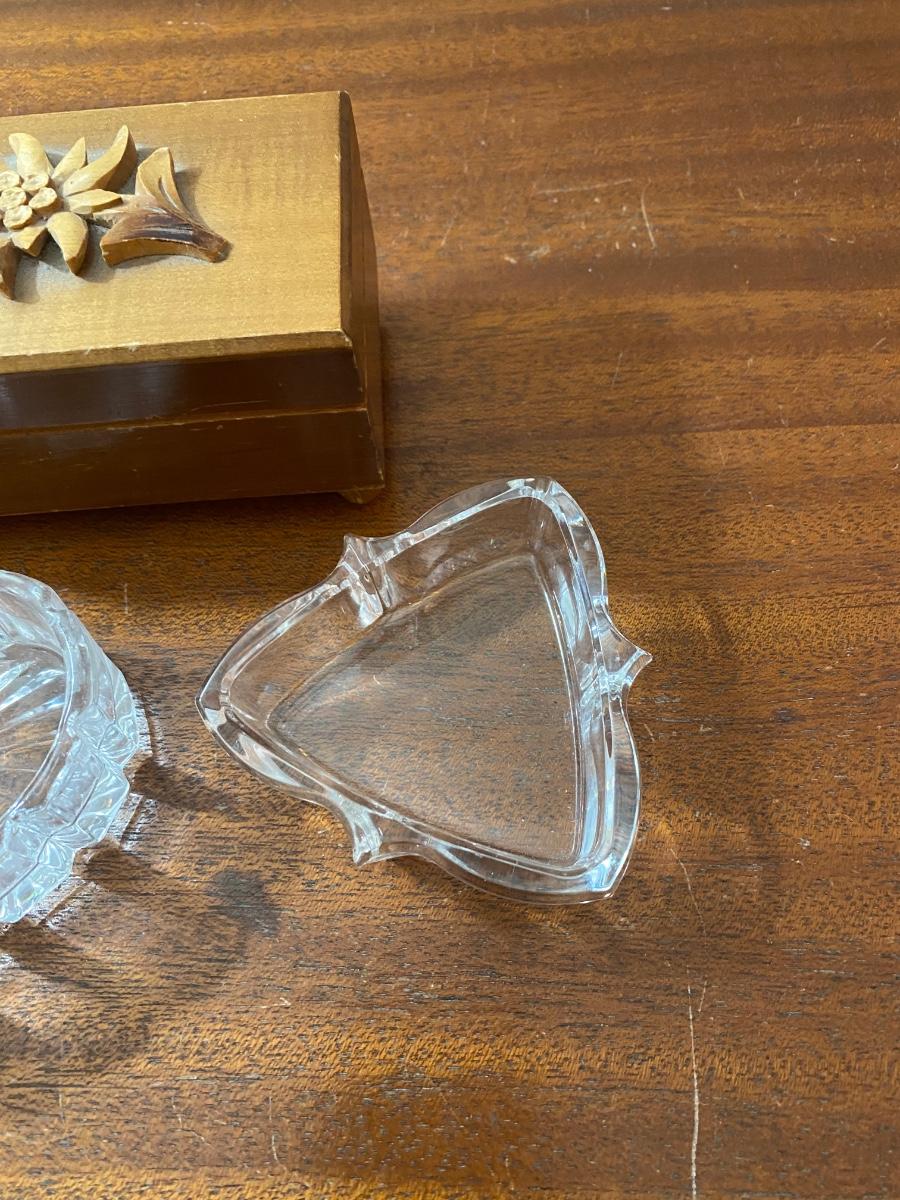 Set of 3 Small Trinket Boxes Dish - Wood Music Box, Glass Dishes