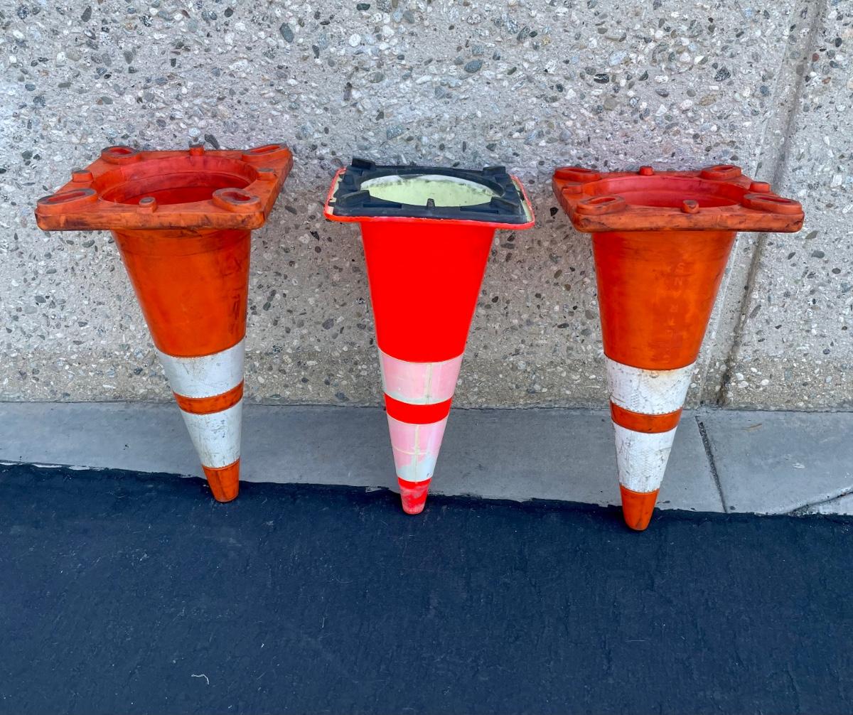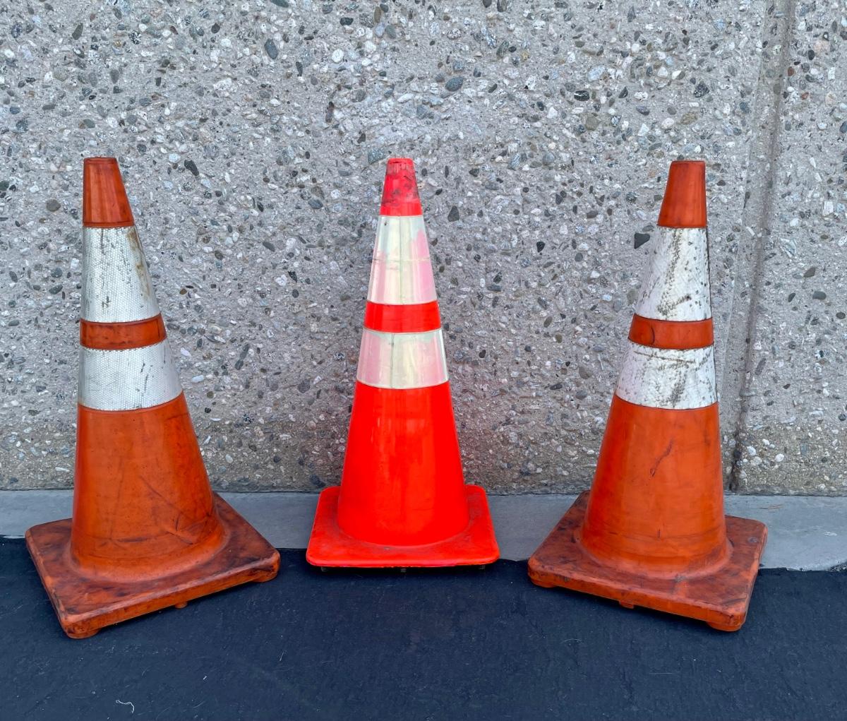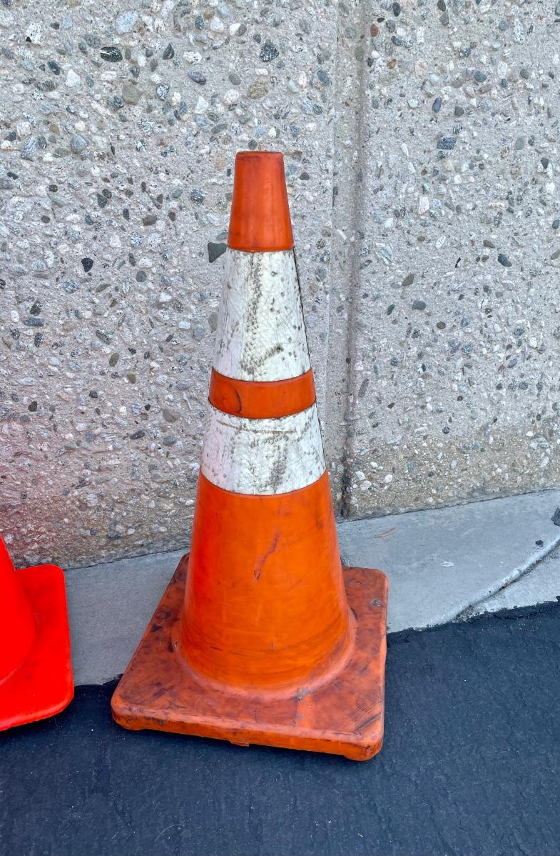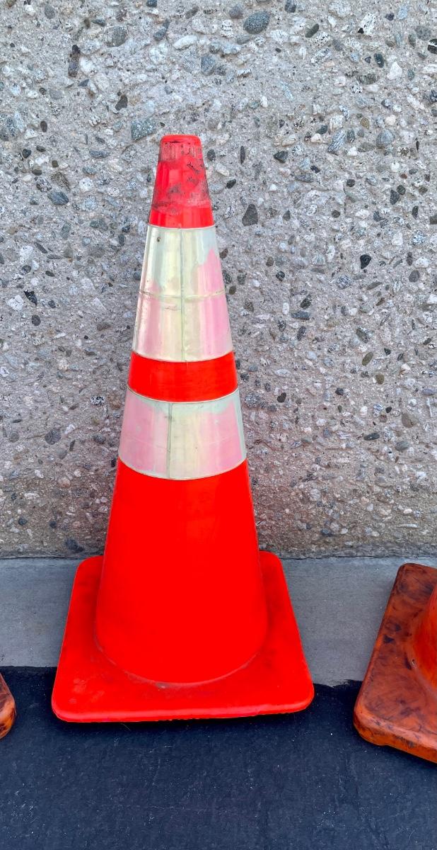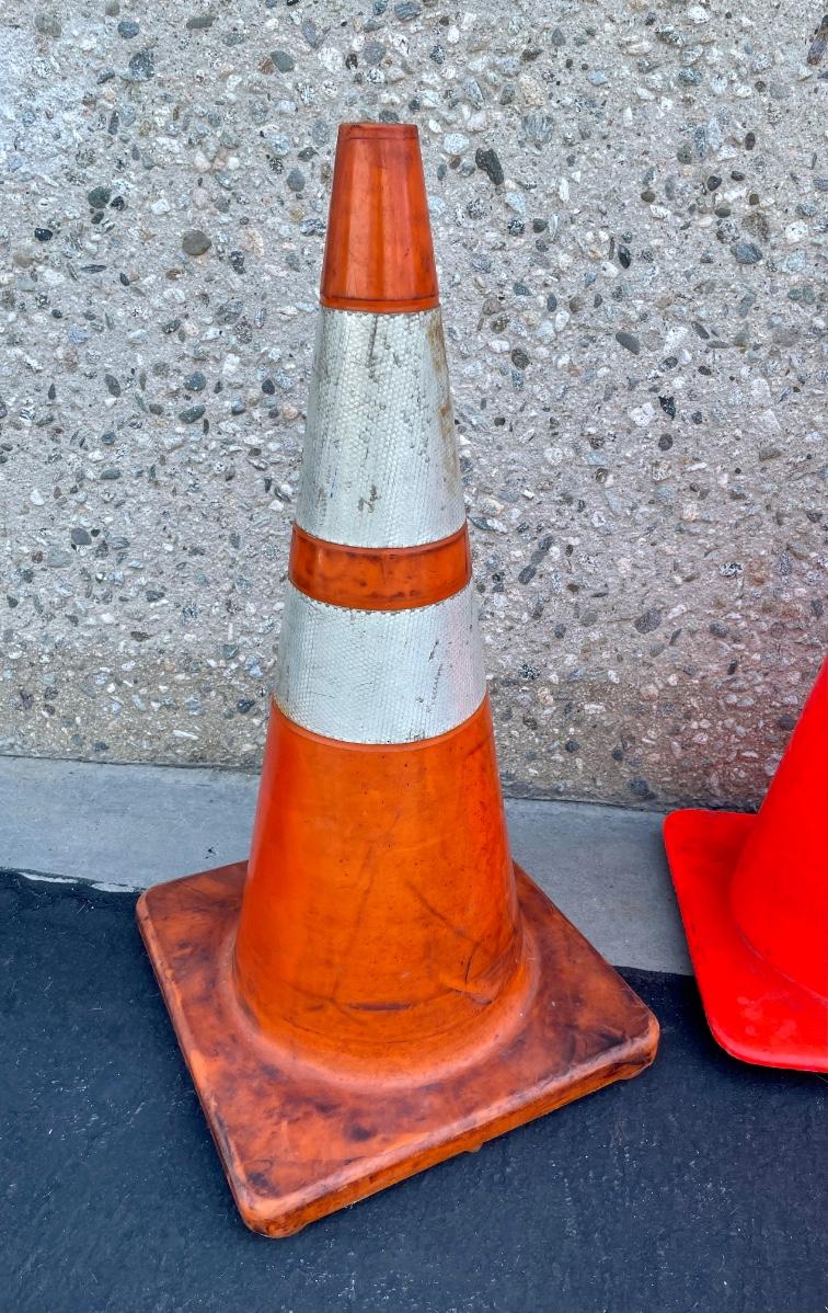 Orange traffic cones. Approx. 28” tall.