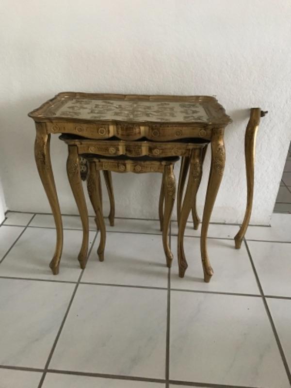 Set of 3 Gold Plastic Nesting Tables *One Damaged* YD#022-0140