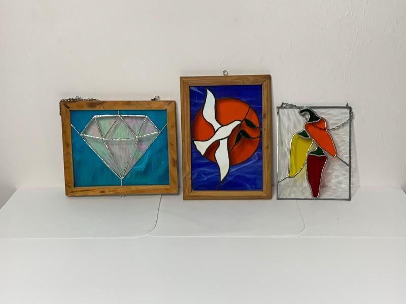Set of (3) Stain Glass Window Art