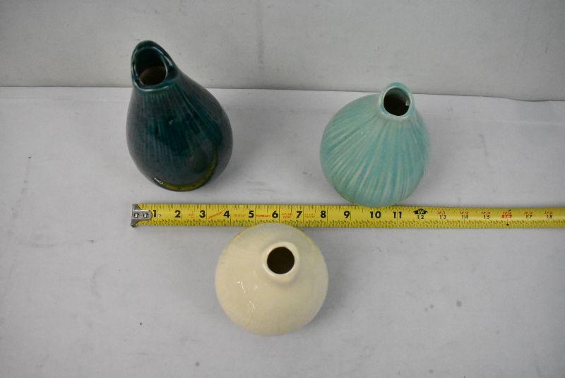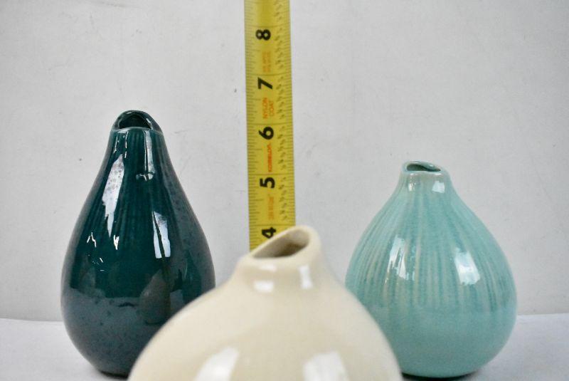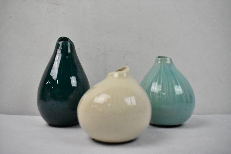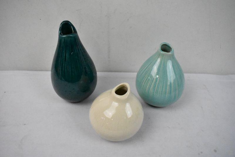 Set of 3 Stein Vases: Dark Blue, Turquoise, and Cream - New