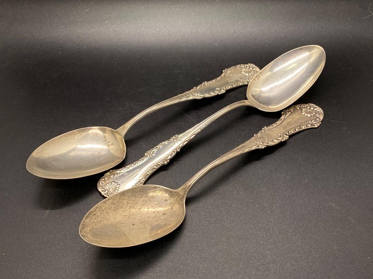 Set of 3 Sterling Silver Serving Spoons Monogrammed W