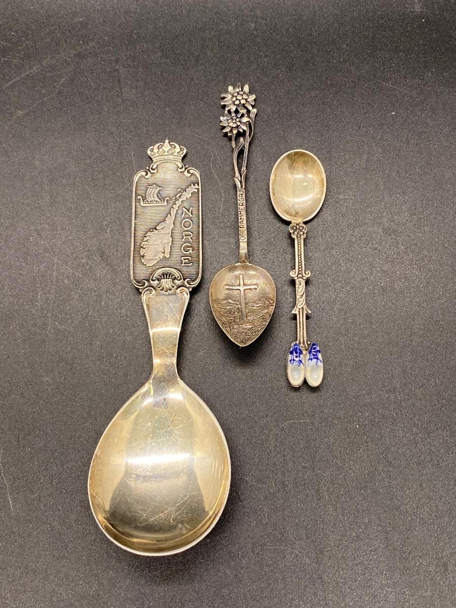 Set of 3 Sterling Silver Collector Vacation Souvenir Spoons Europe