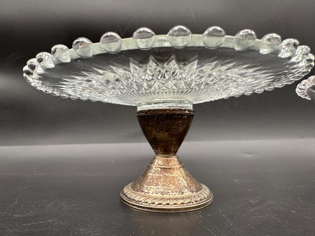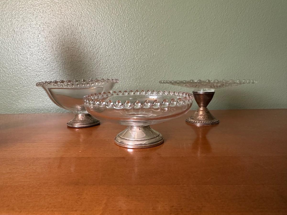 Set of 3 Sterling-Based Glass Compotes
