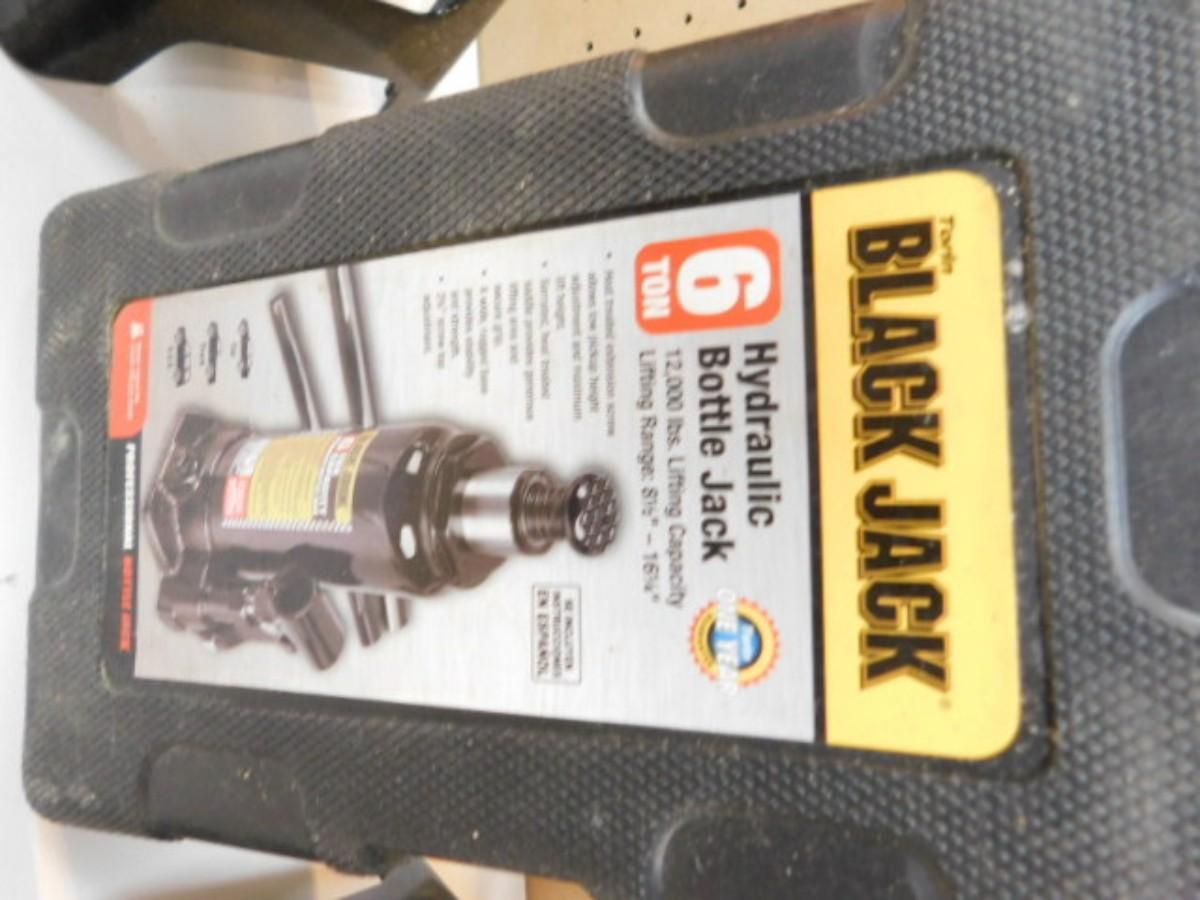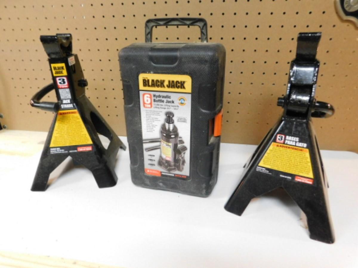 Set of 3 Ton Car Stands and a 6 Ton Bottle Jack in Like-New Condition