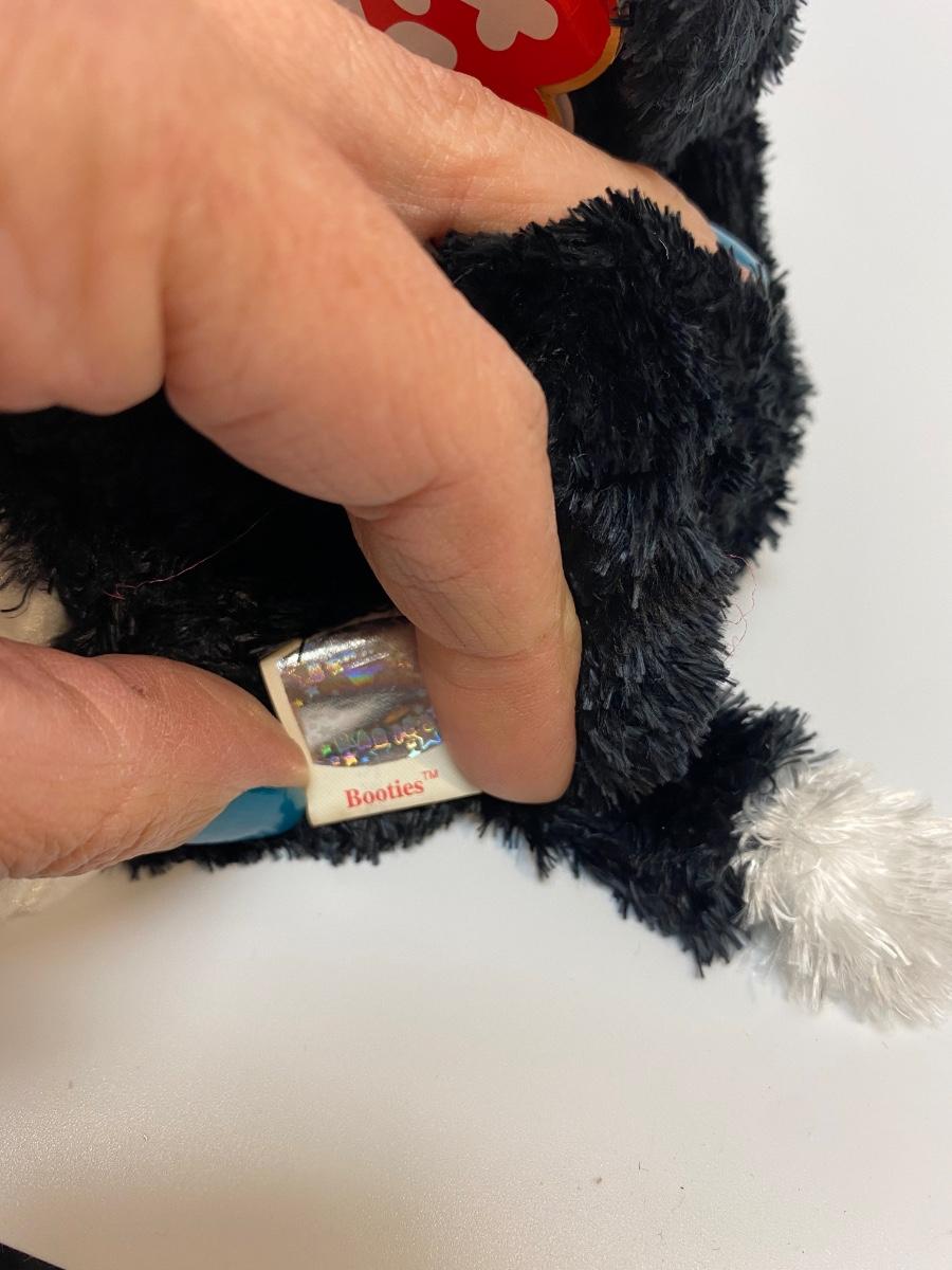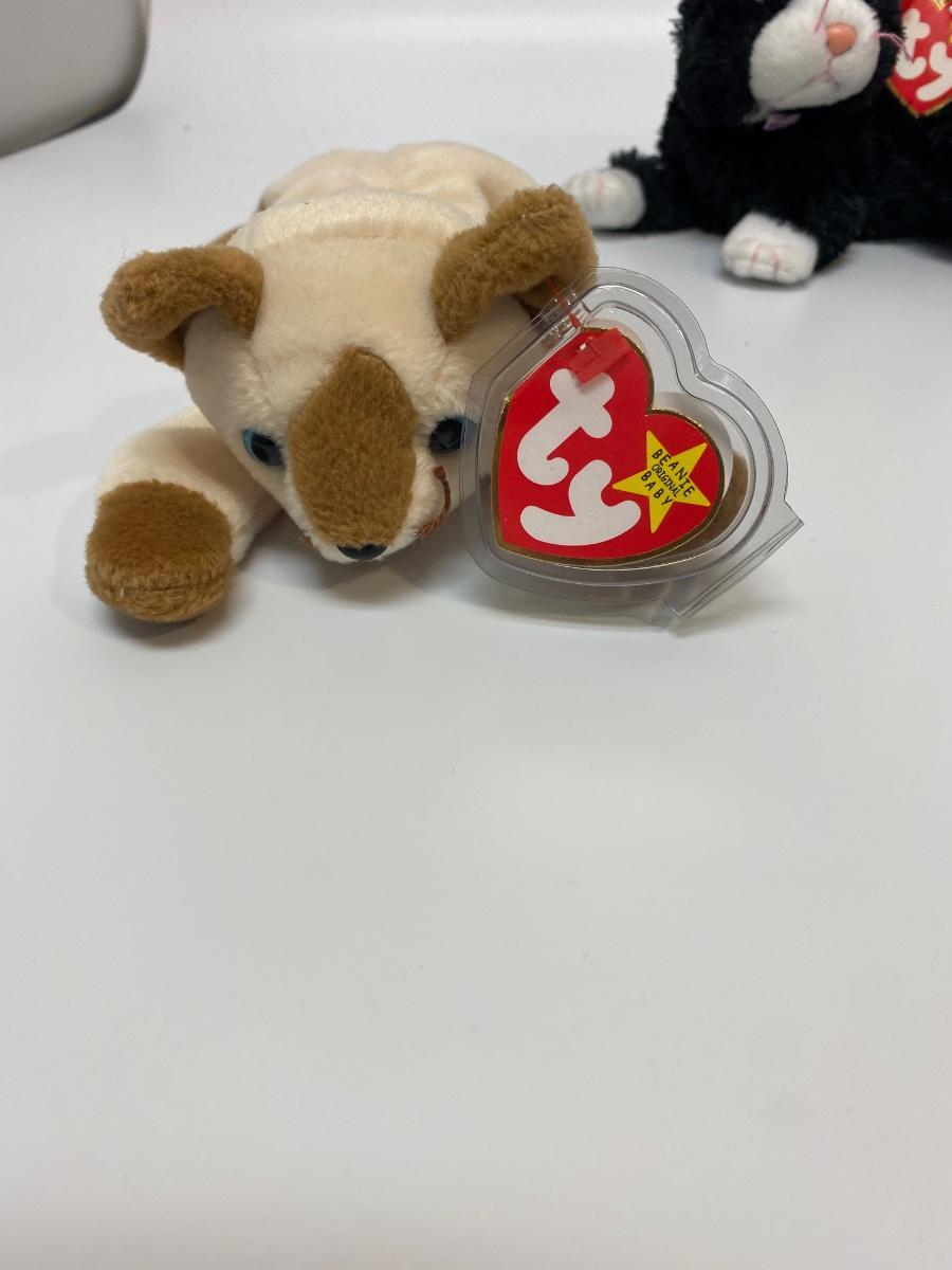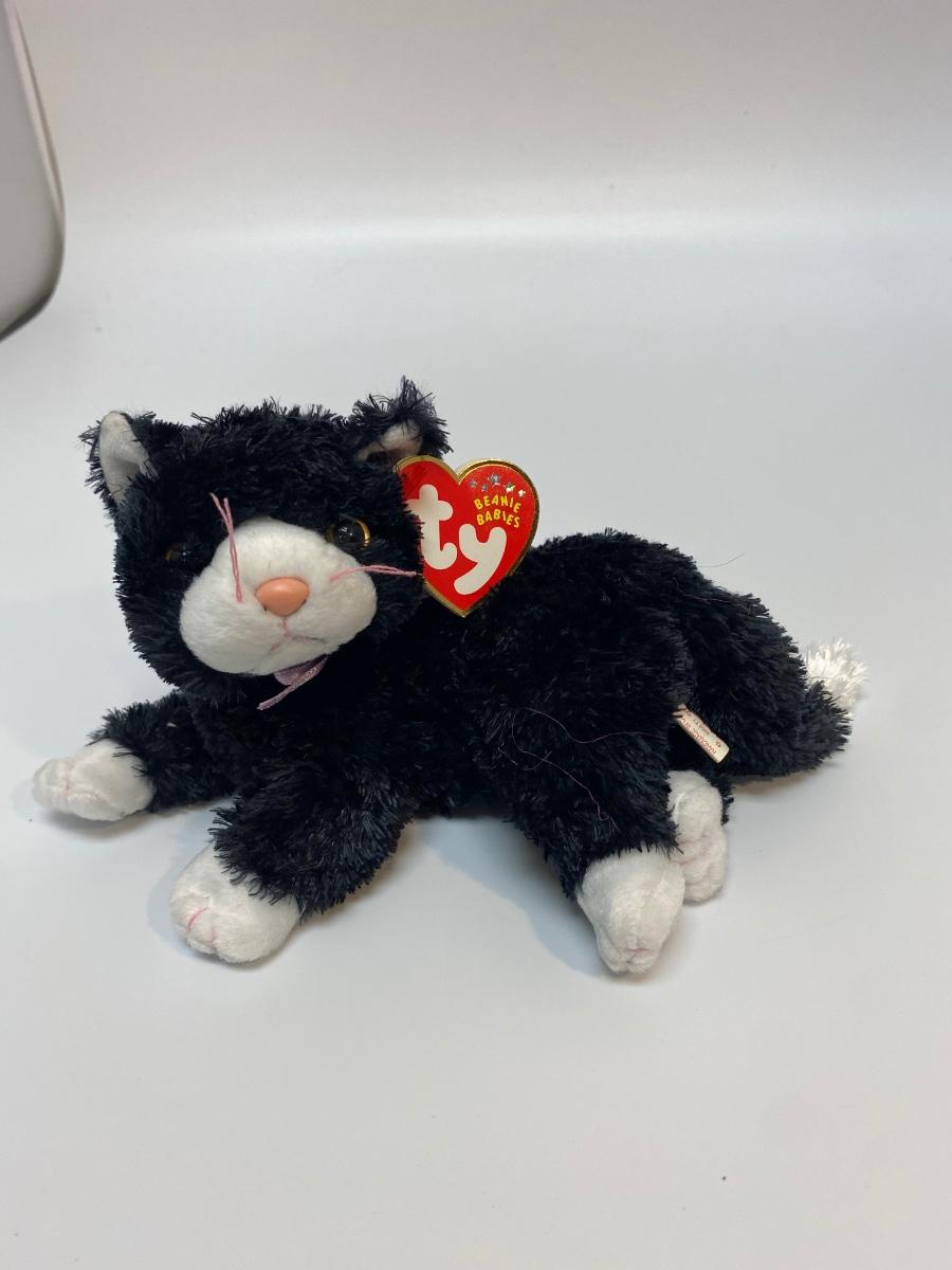 Set of 3 TY beanie baby plush cats. All have hang tags attached. Includes black & white cat "Booties", grey striped cat "Prance", and siamese cat "Snip". All in good condition. Snip has a hang tag protector on it.