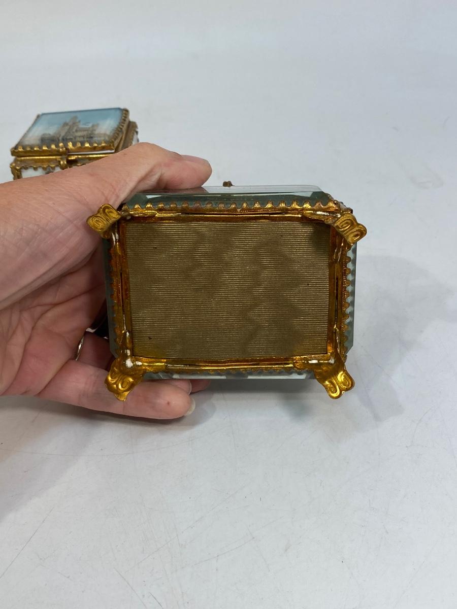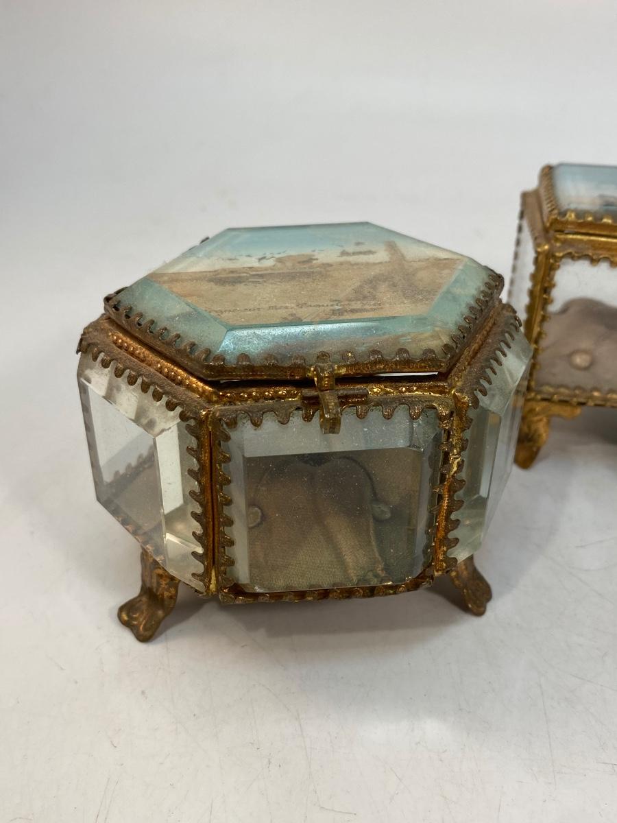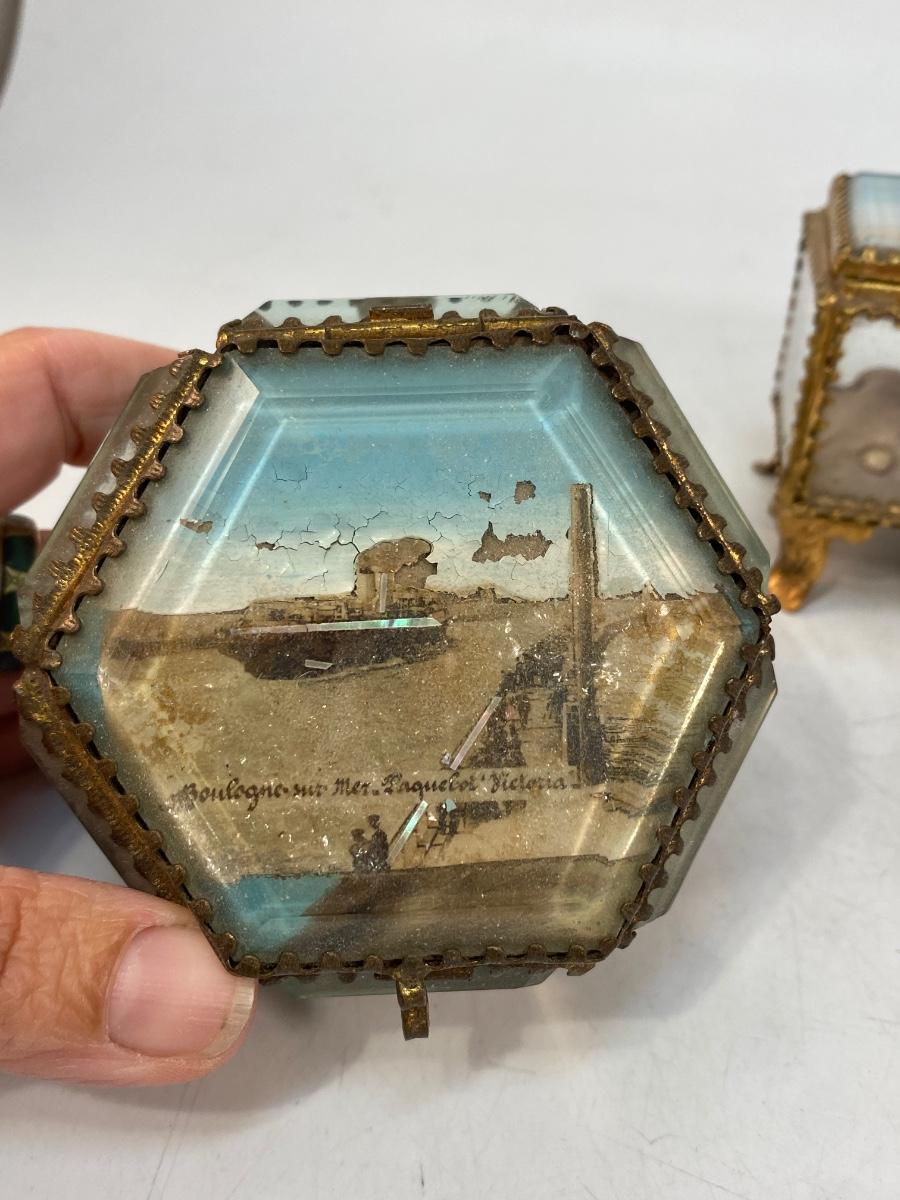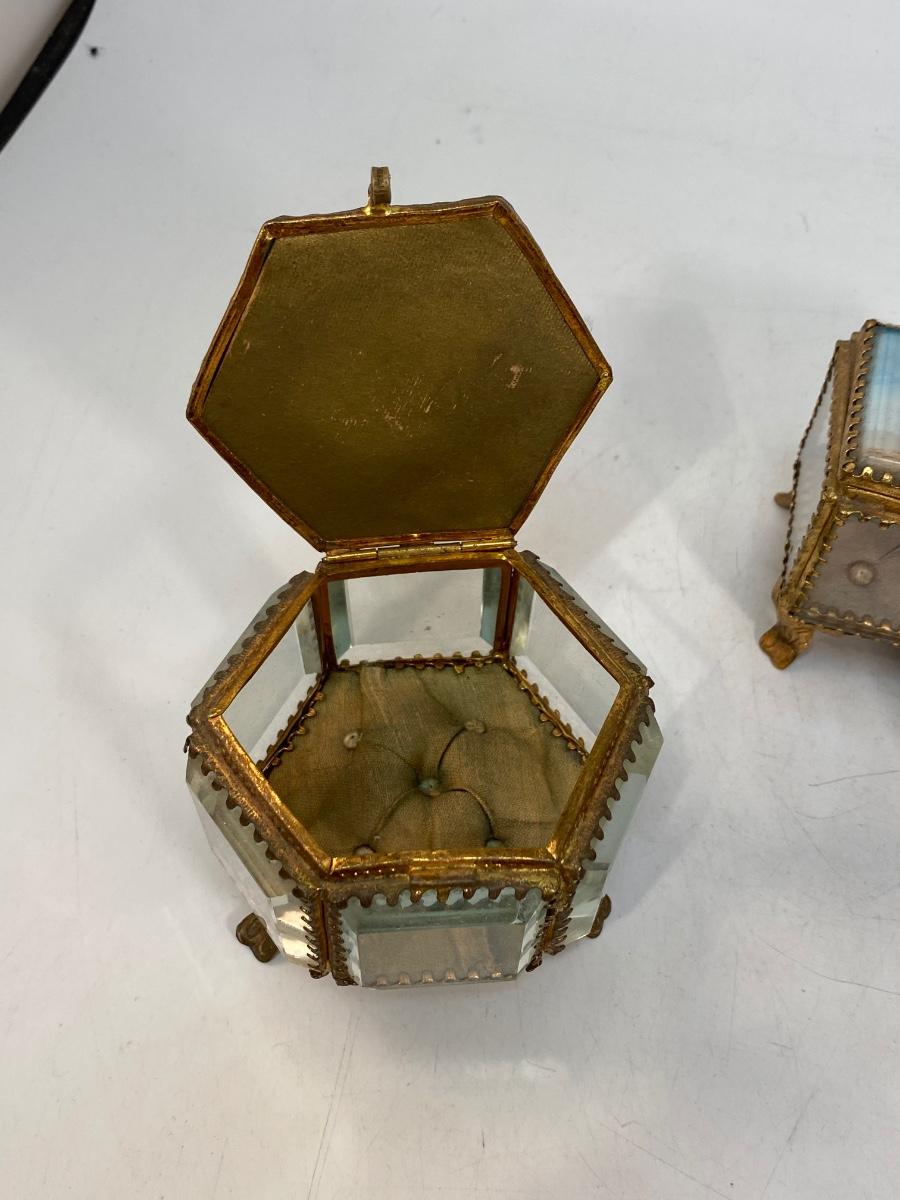 Set of 3 Vintage Antique Glass Side Jewelry Casket Trinket Boxes