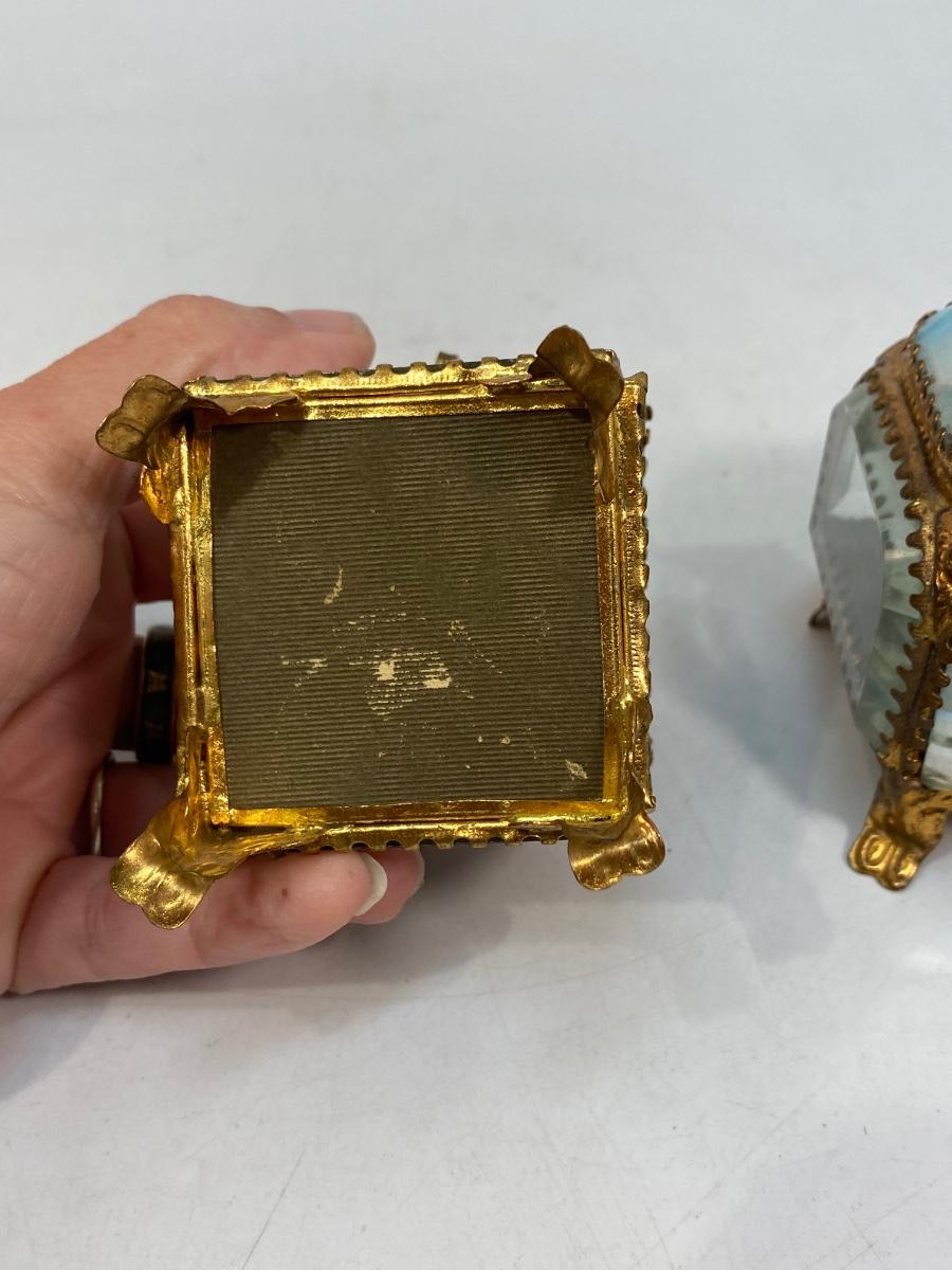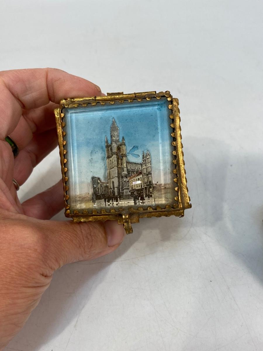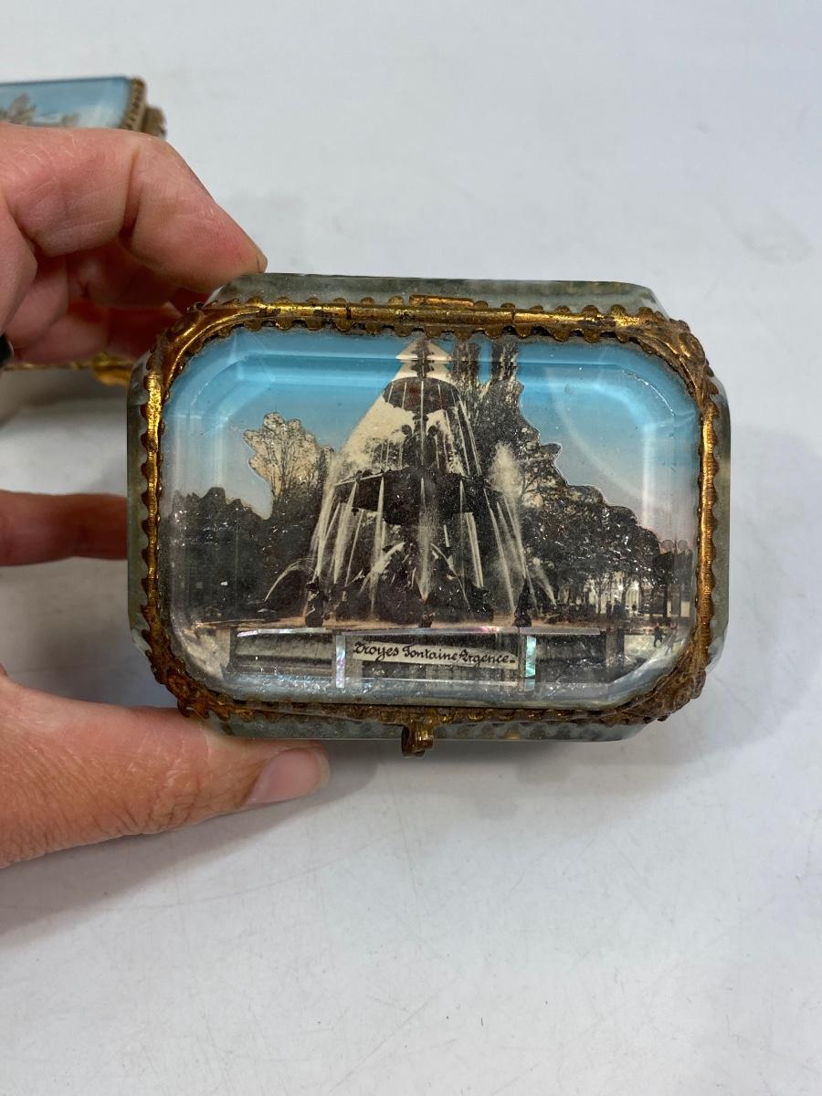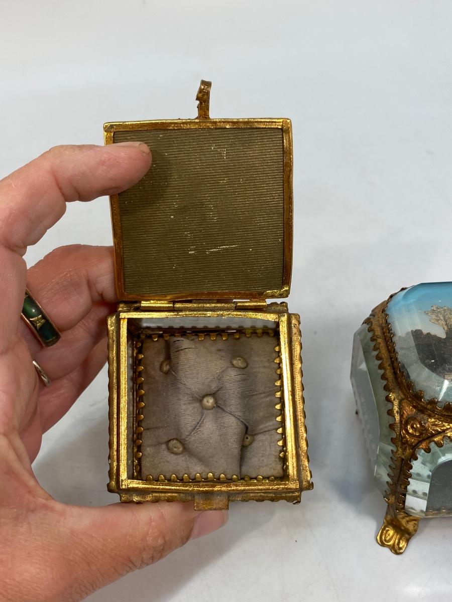 Set of 3 Vintage Antique Glass Side Jewelry Casket Trinket Boxes