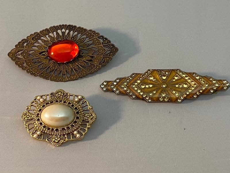 Set of 3 Vintage Art Deco Art Nouveau Brooches