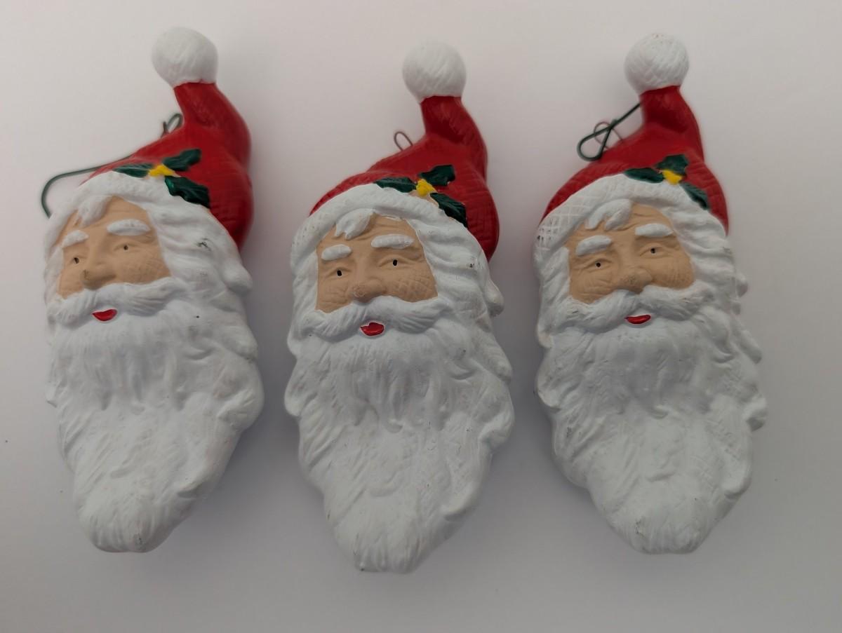 Set Of 3 Vintage Ceramic Santa Claus Face Ornaments Hand Painted Christmas Dcor