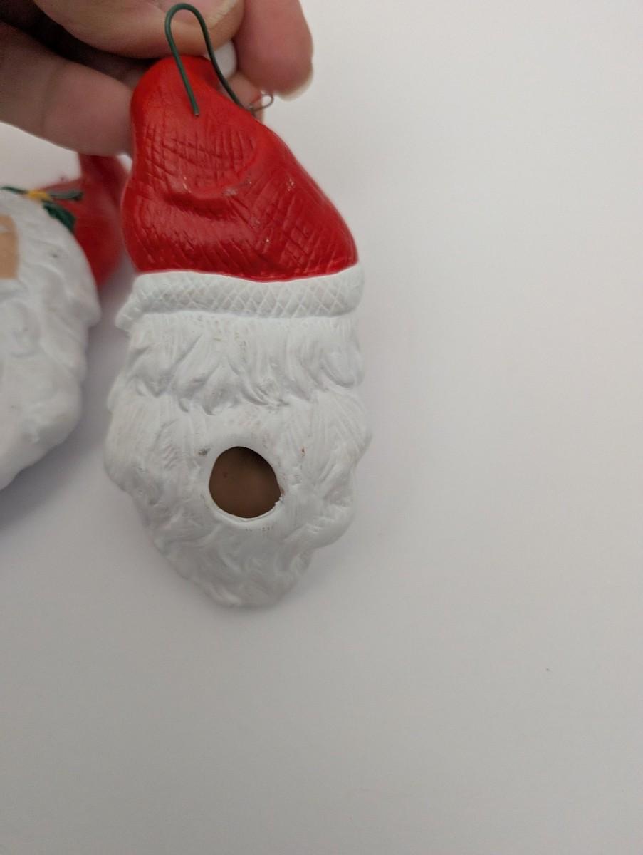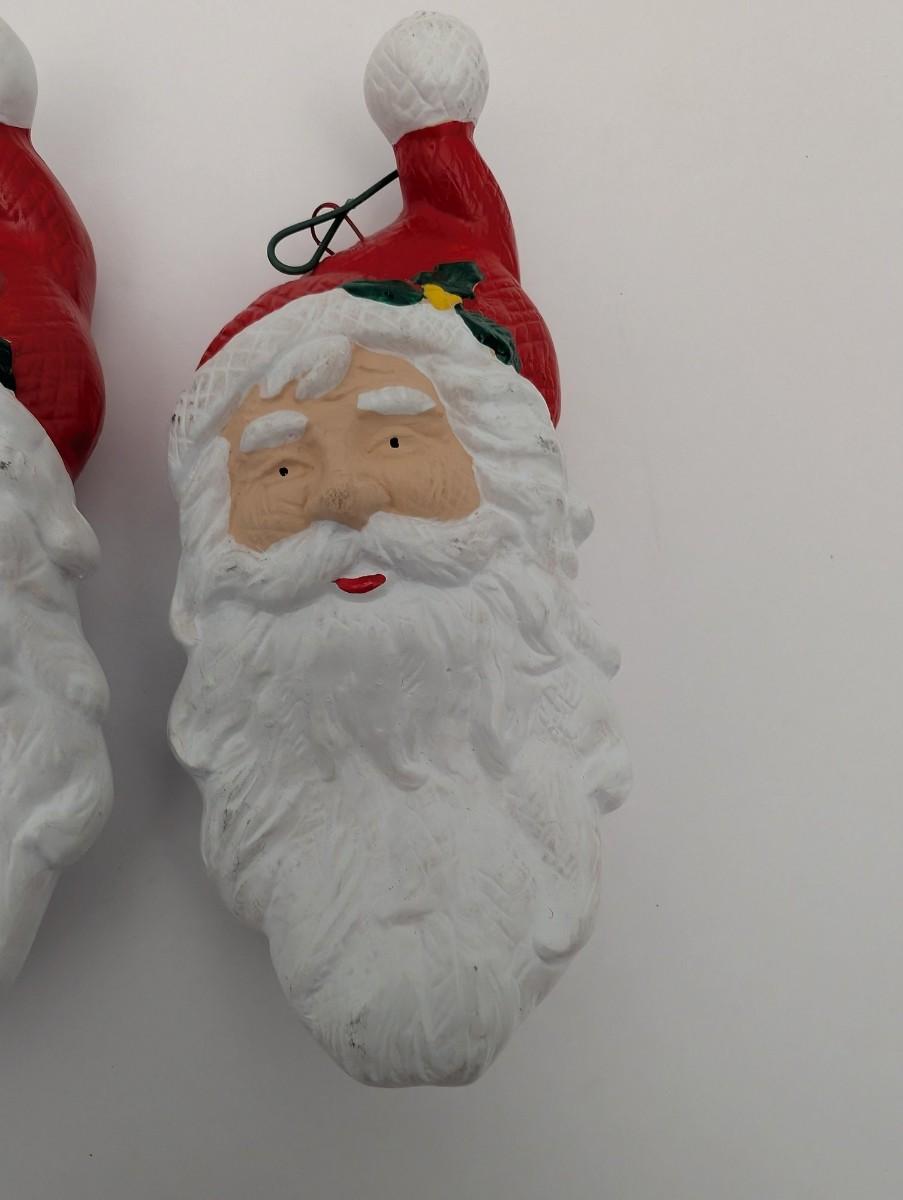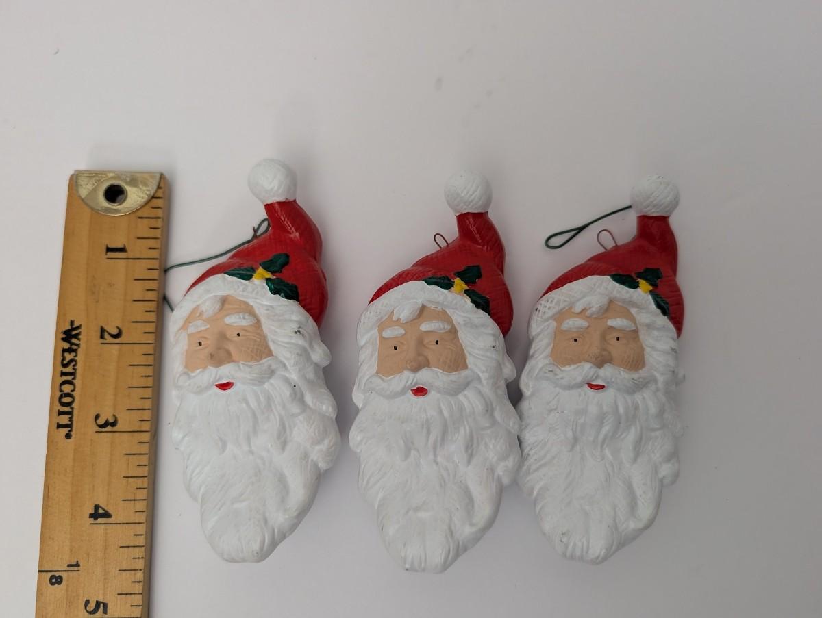 Set Of 3 Vintage Ceramic Santa Claus Face Ornaments Hand Painted Christmas Dcor