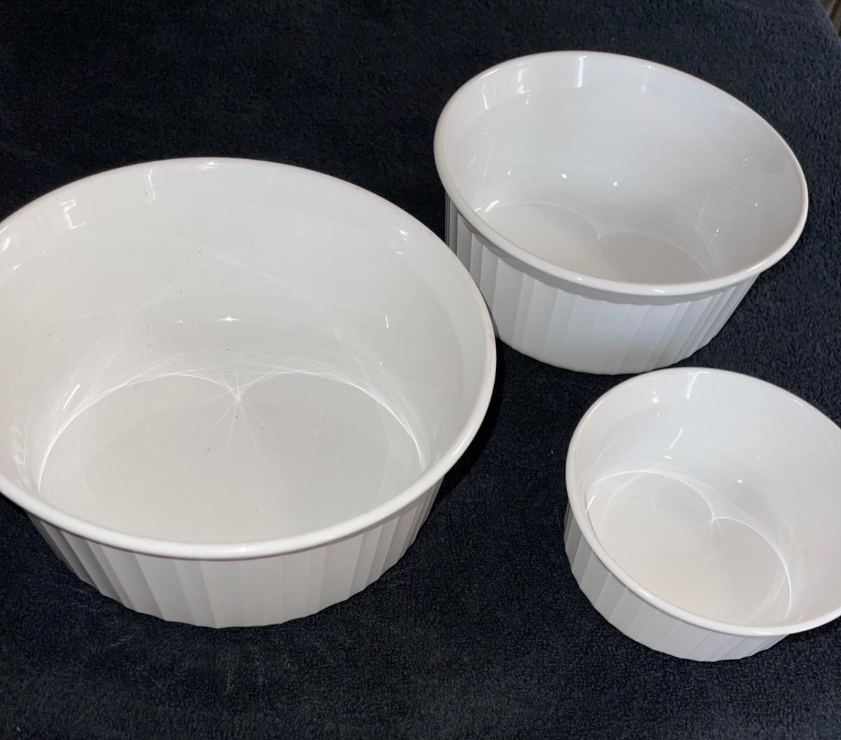 A lovely trio of vintage Corningware bowls all in great shape! Measurements are in the photos.