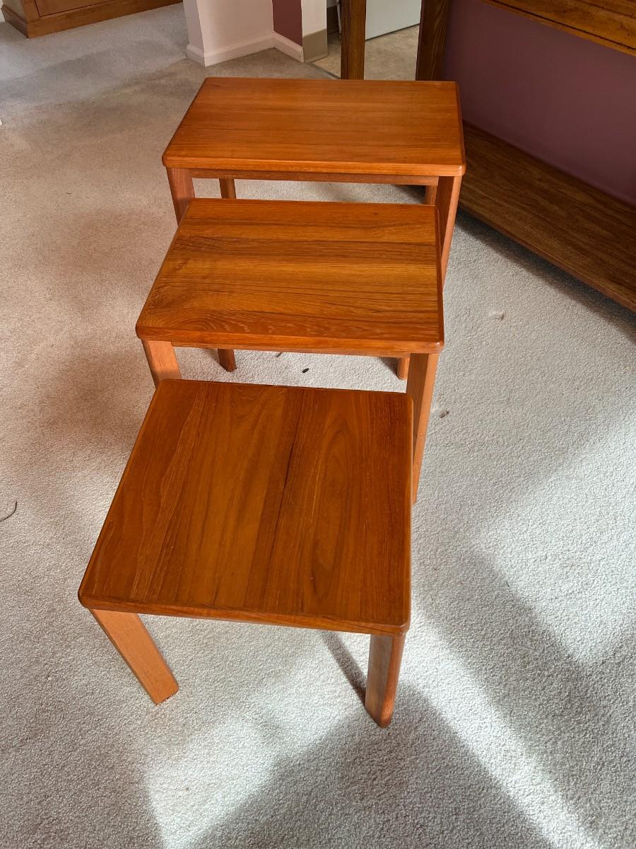 Set of 3 Vintage Denmark Mobelfabrikken Toften Teak Nesting Side Tables
