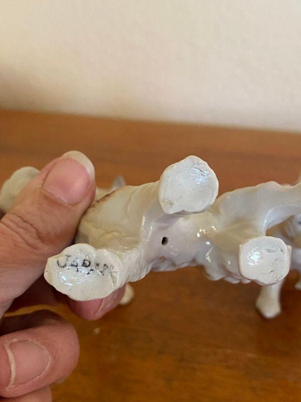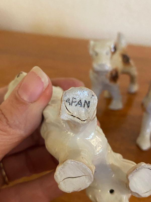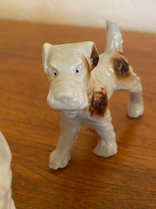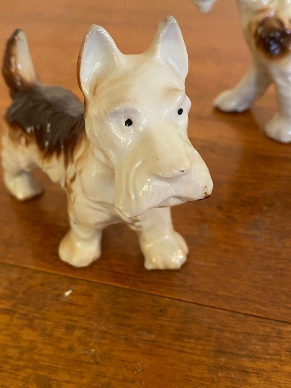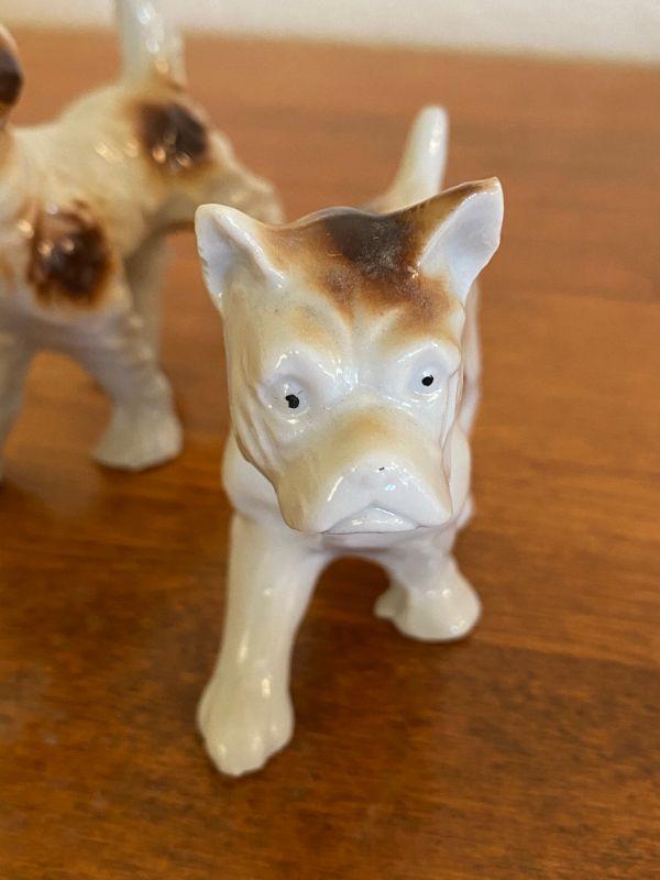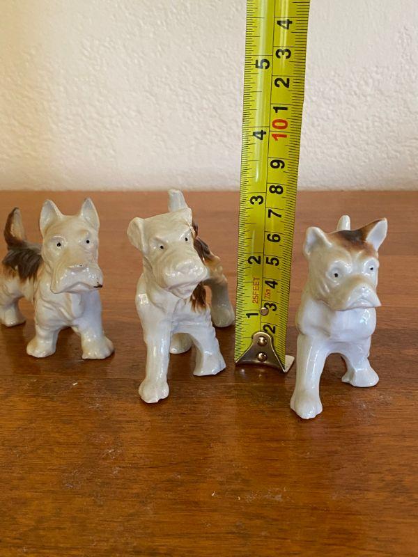Set of 3 vintage dog figurines. White and brown dogs, each one different. Made in Japan. Good condition.