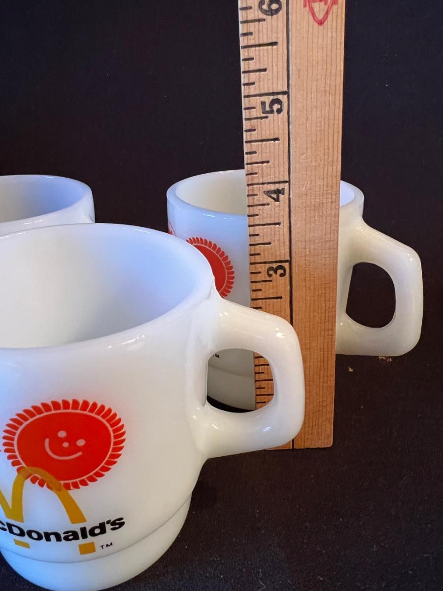 Set of 3 Vintage McDonald's White Glass Coffee Mugs original bags!