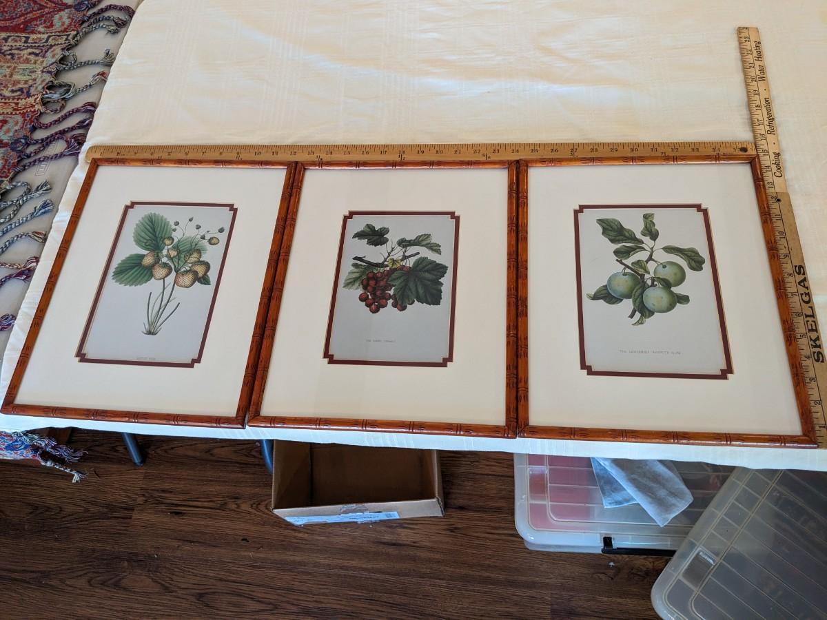 Set of 3 Vintage Plant Prints in Bamboo Frames