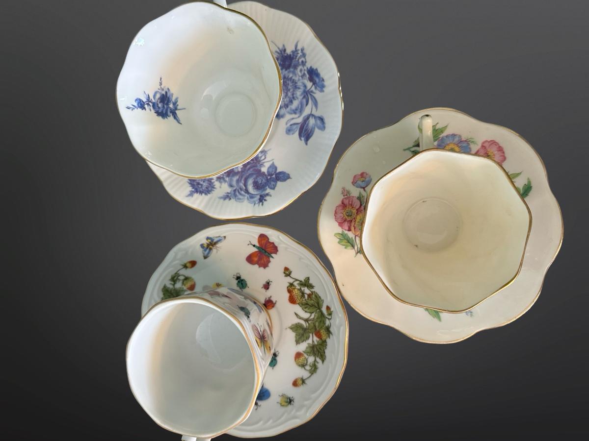 Set of 3 Vintage Porcelain Teacup and Saucer Sets