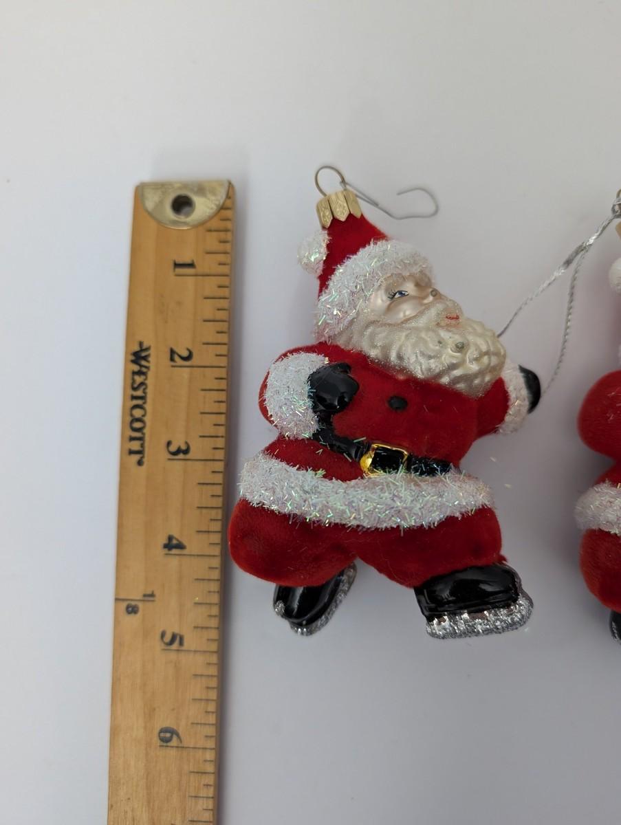 Set Of 3 Vintage Style Santa Claus Christmas Ornaments With Velvet Suits