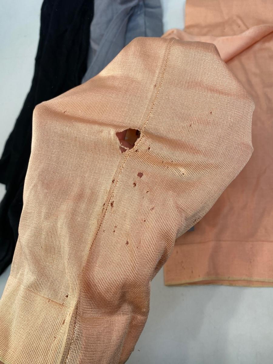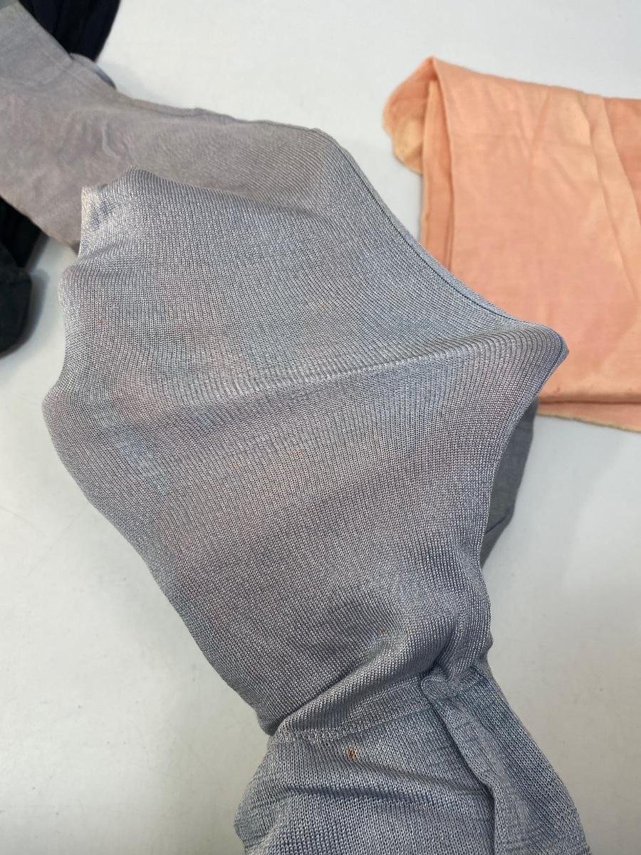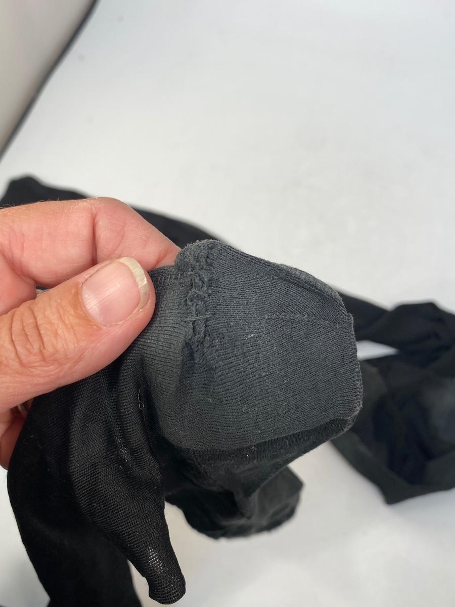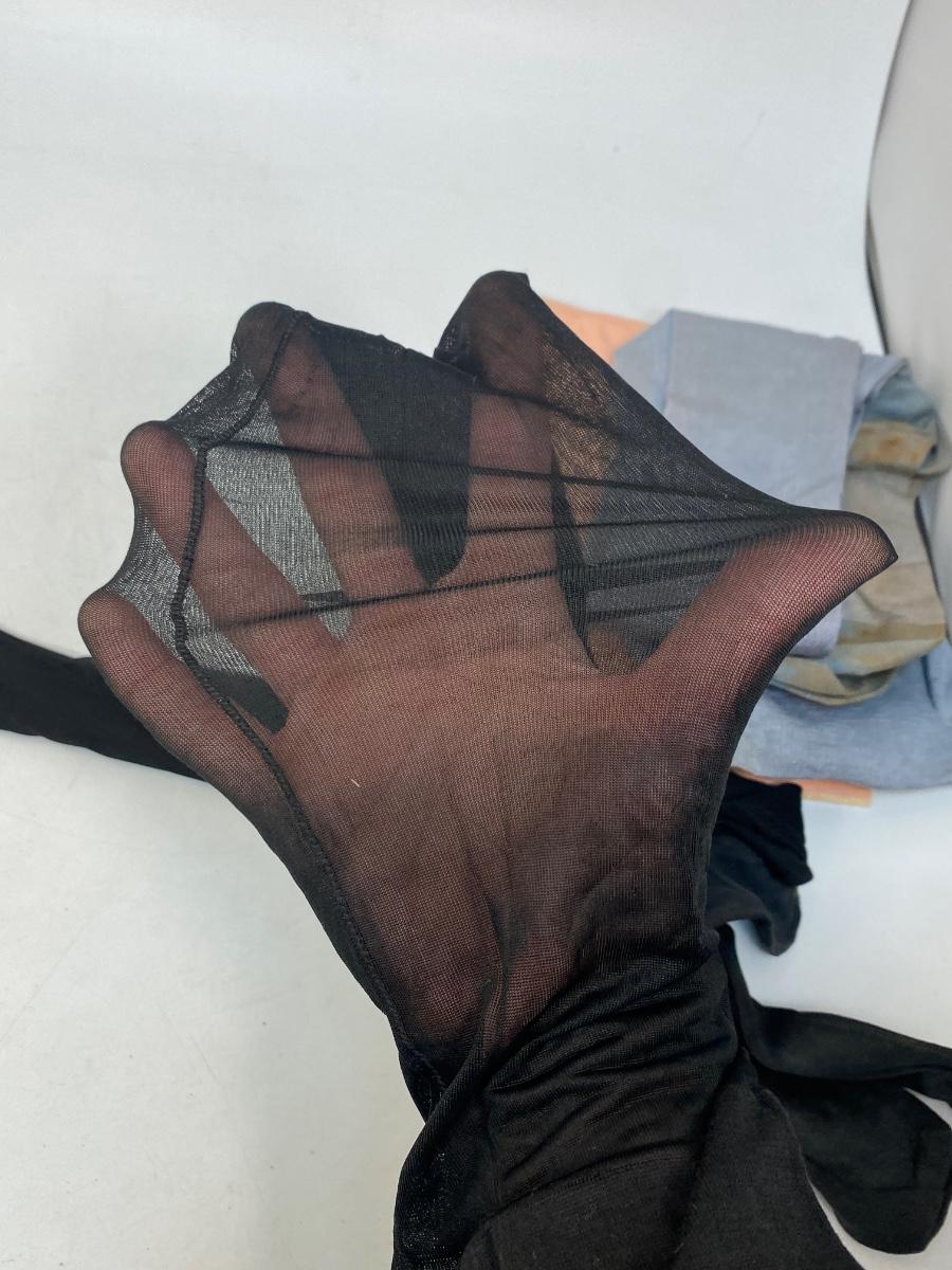 Set of 3 Vintage Thigh High Stocking Socks Nylons Black, Blue, Peach. Previously worn. There is discolor and may be small holes.