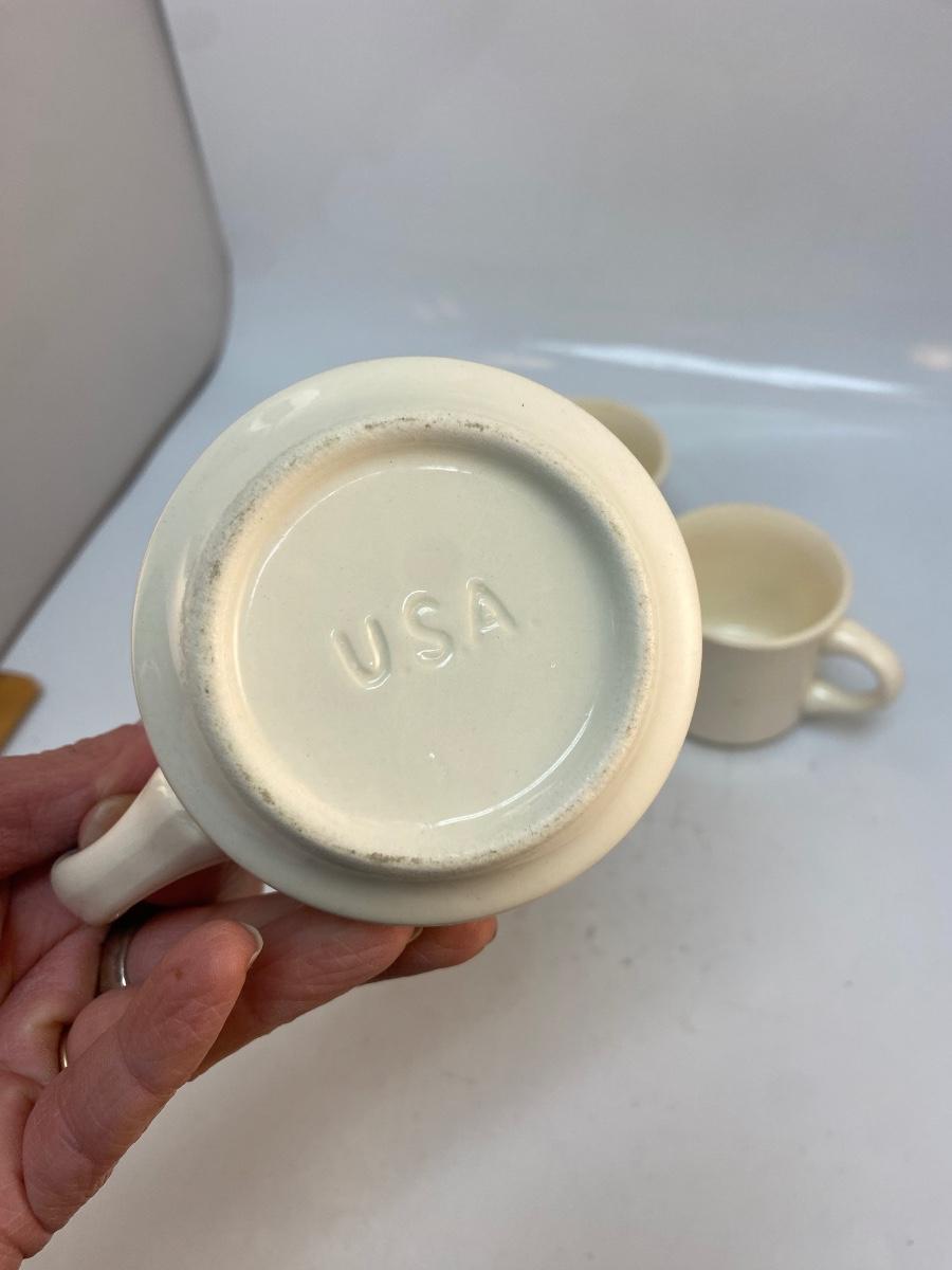 Set of 3 Vintage White USA Pottery Diner Style Coffee Cup Mug