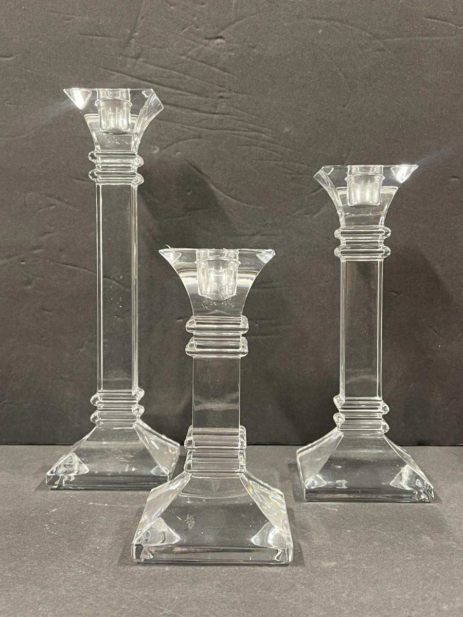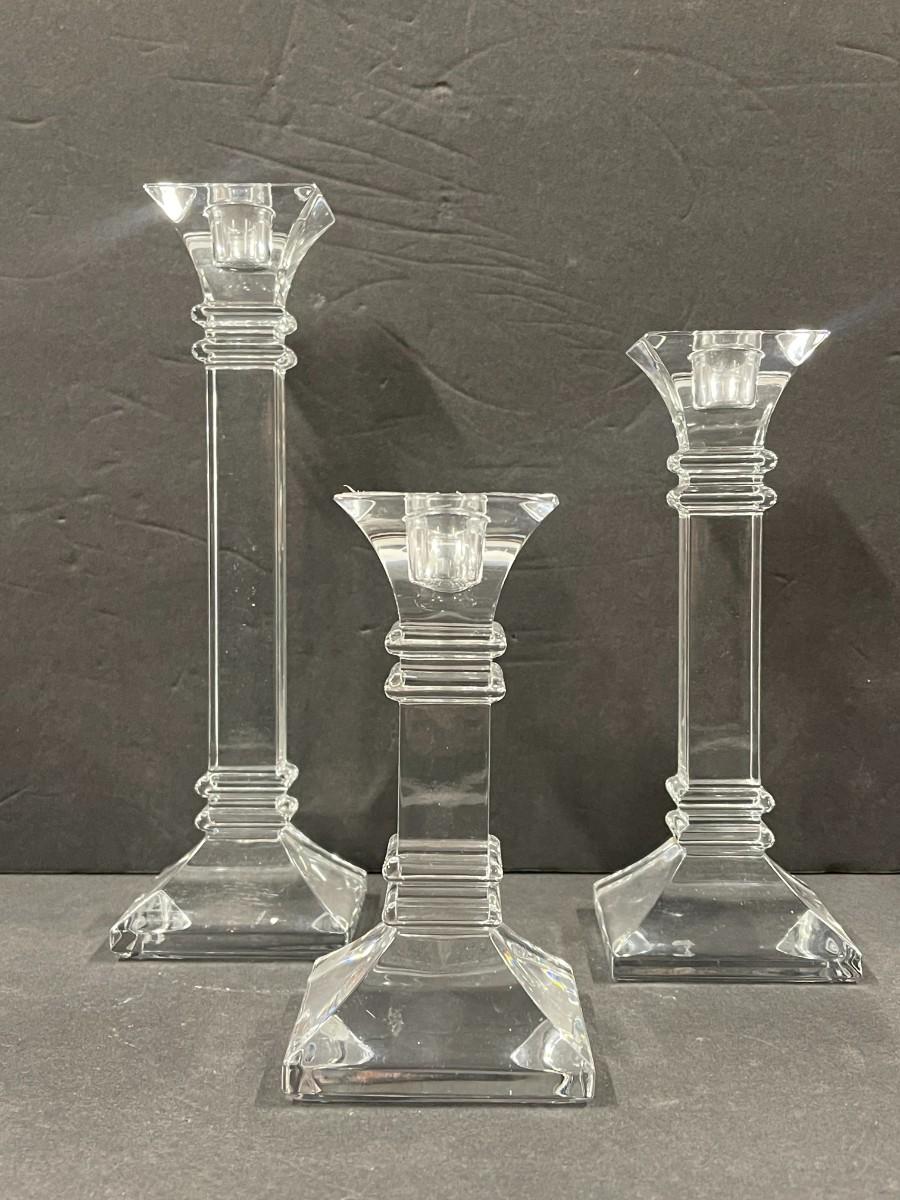 Set of 3 Waterford Marquis candle sticks in varying heights. 10", 8", 6". Excellent condition. All stamped "Marquis by Waterford".