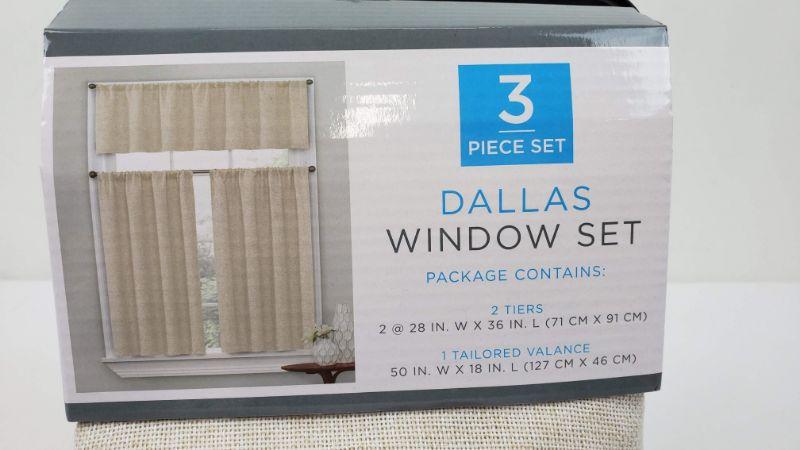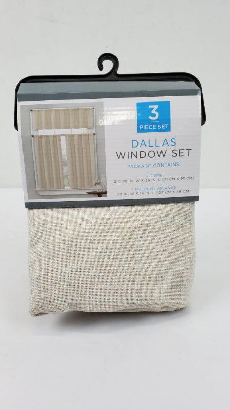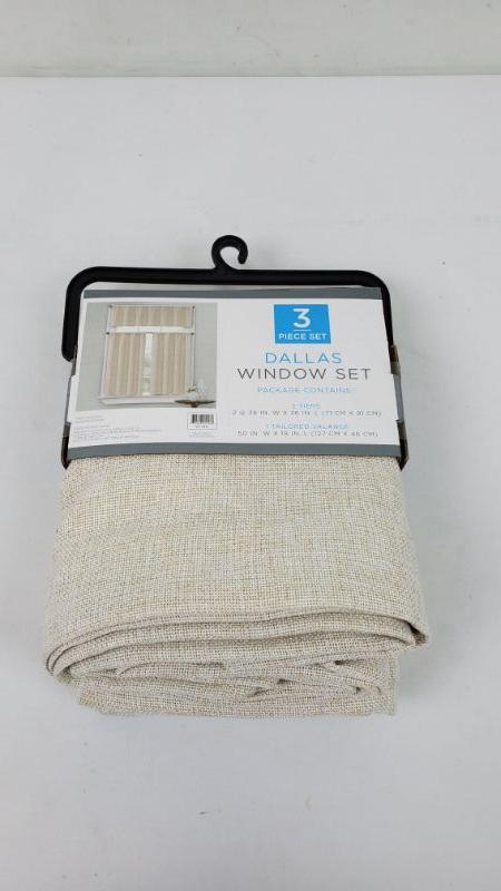 Set of 3 Window Treatments, Dallas Window Set, 2 Tiers/1 Tailored Valance, Natural Color - New