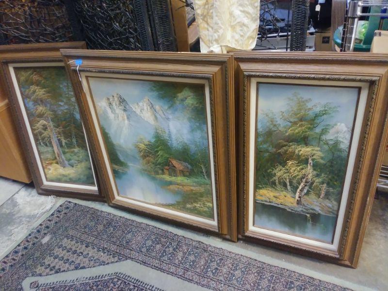 Set of 3 Wood Framed Landscape Paintings 19 1/2" and 27 1/2 W" x 32 1/2" H