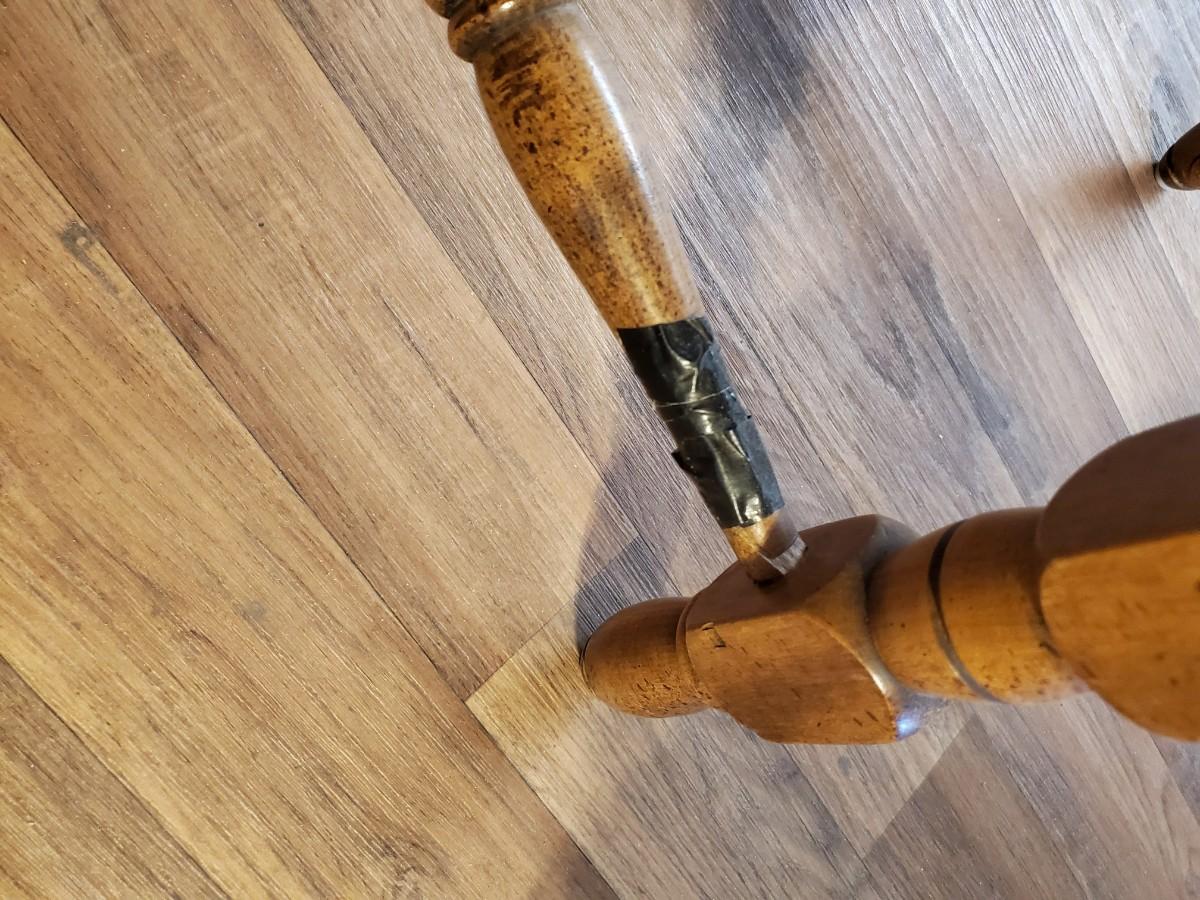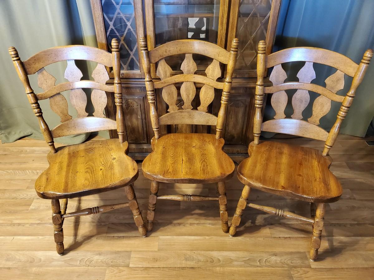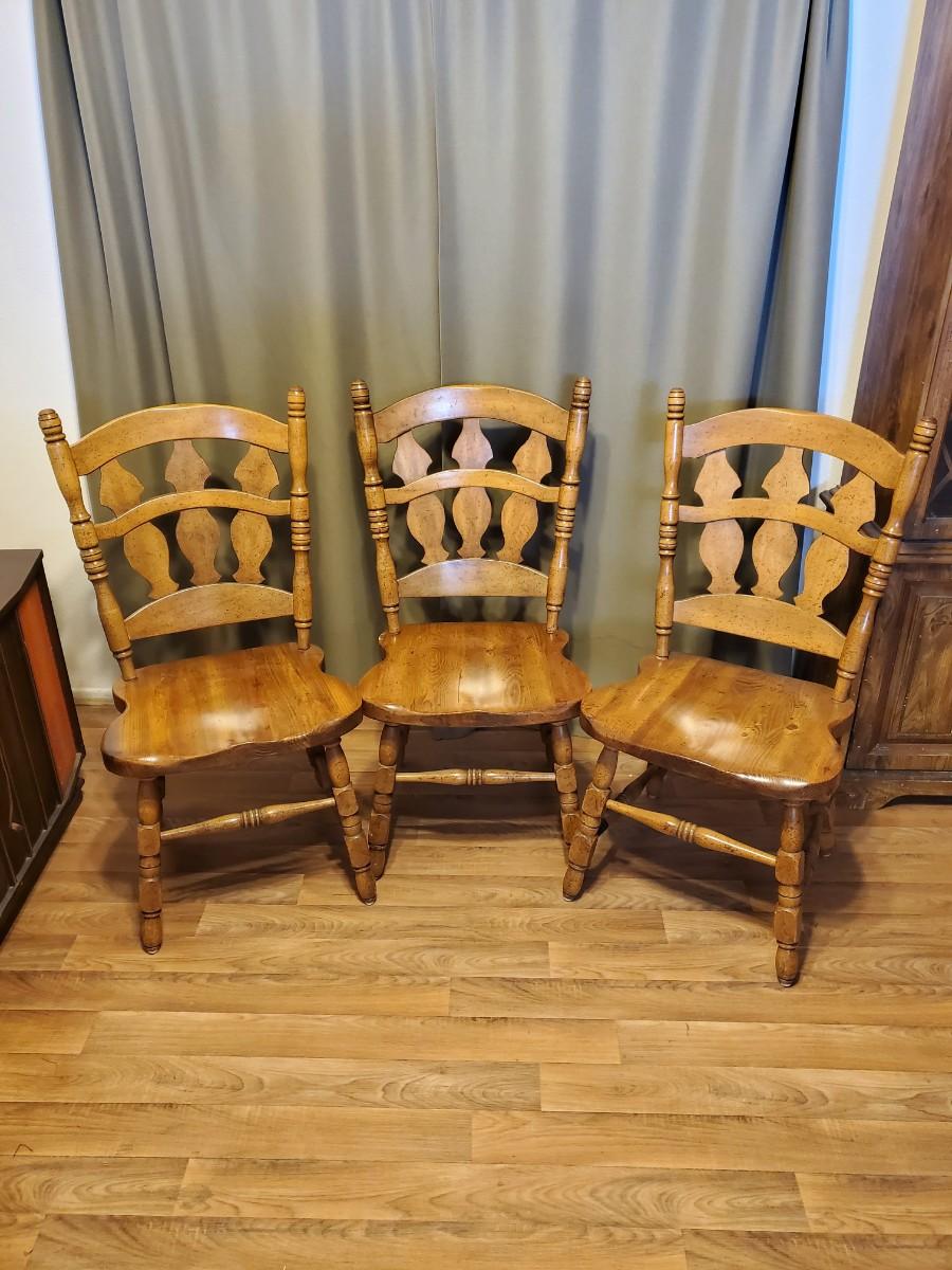 Heavy Duty Wooden Dinette Chairs. One has a broken cross-member underneath and has been taped.