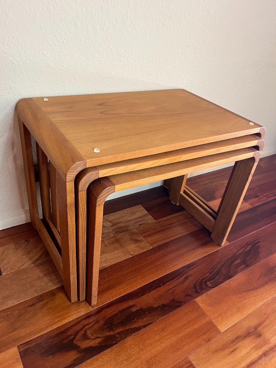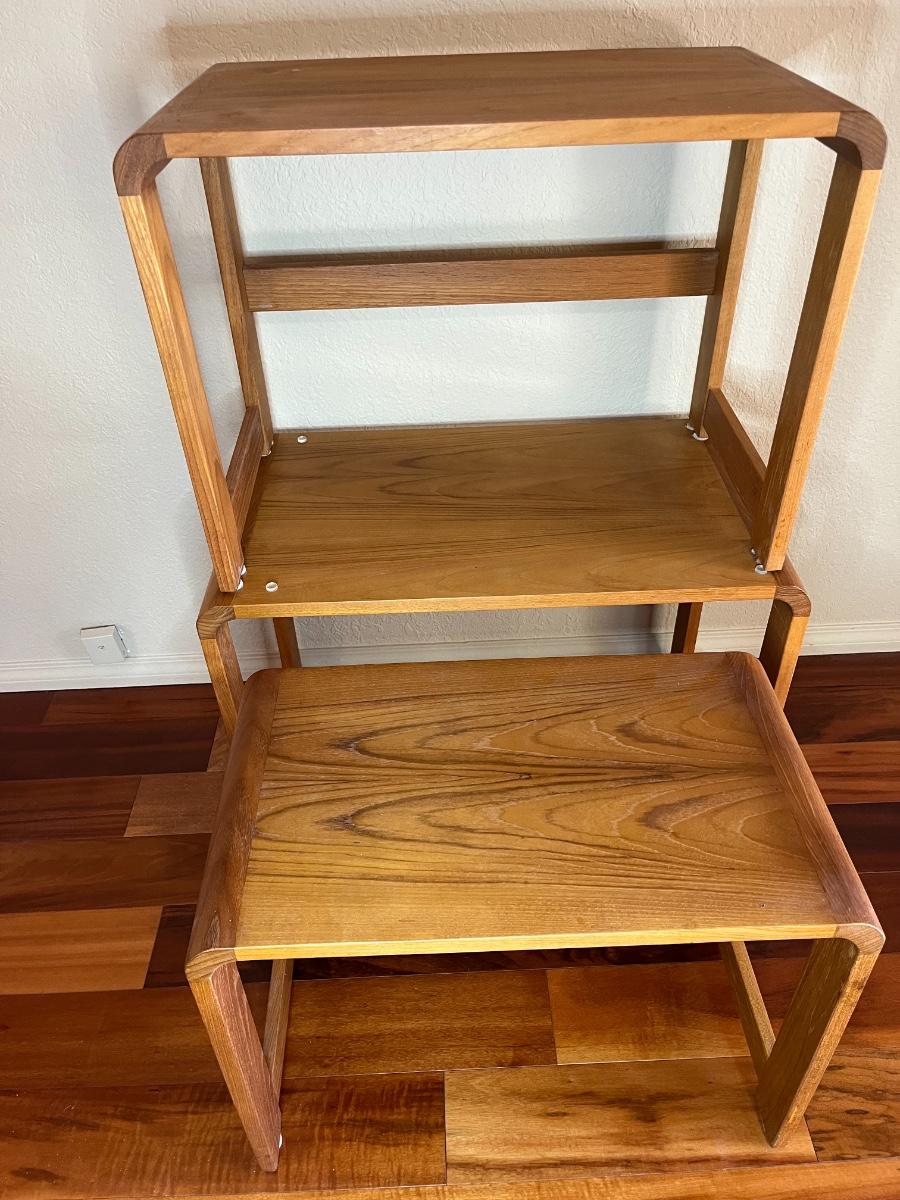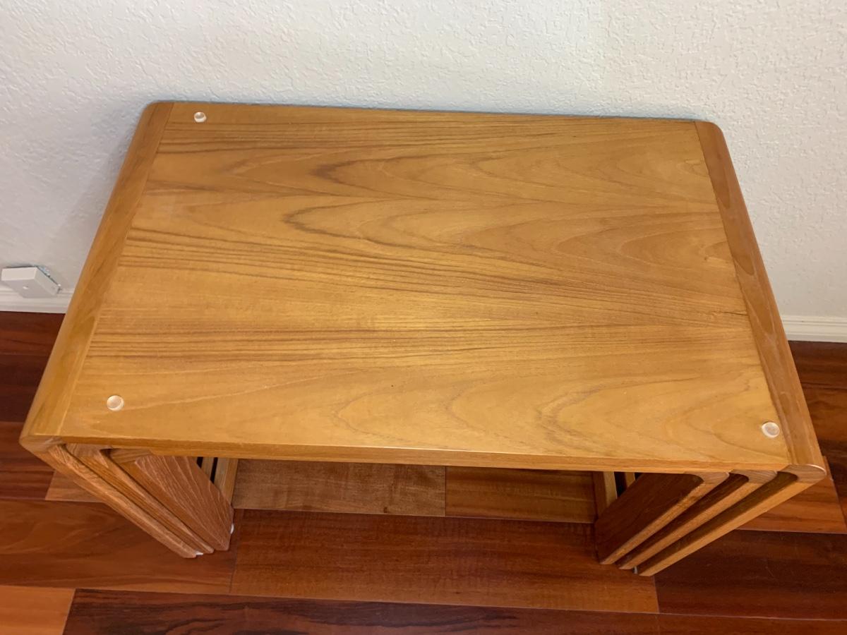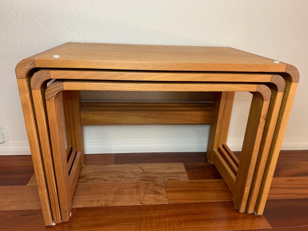 Set of 3 Wooden Nesting Tables (Largest table is supposed to have a glass piece that is missing from the top. All other tables did not come with a glass piece)- 16"x26.5"x19"