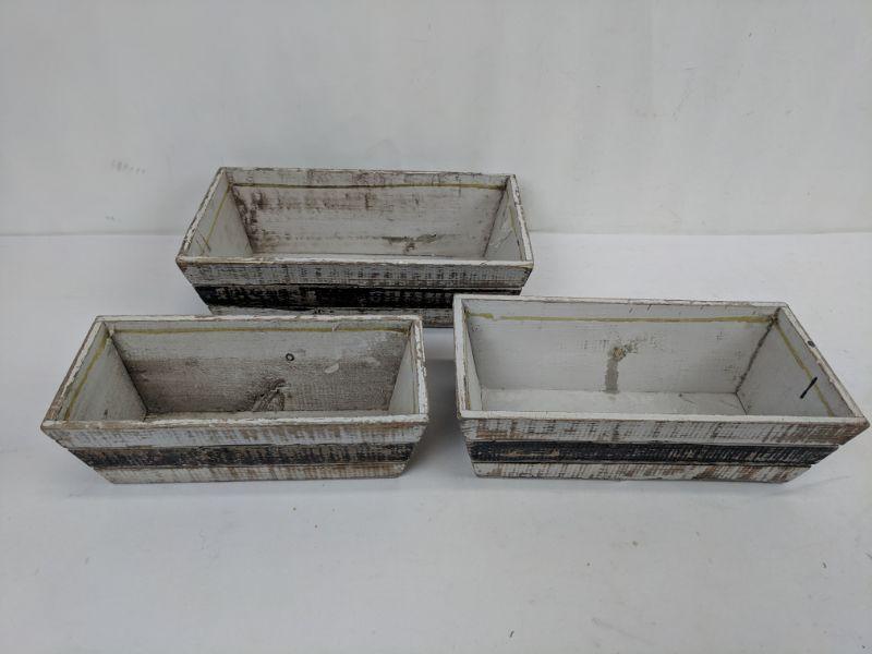 Set of 3 Wooden Striped Boxes