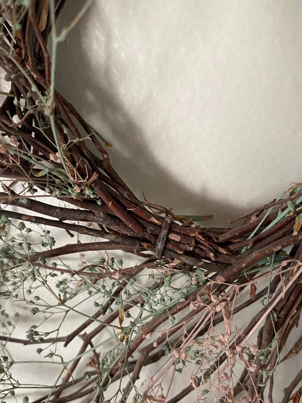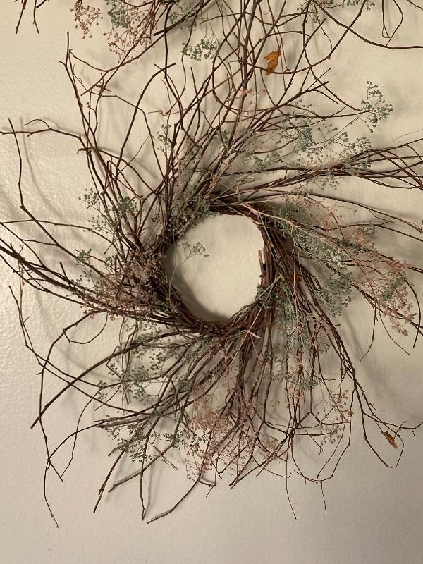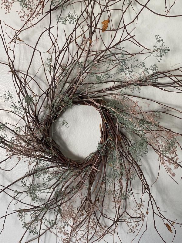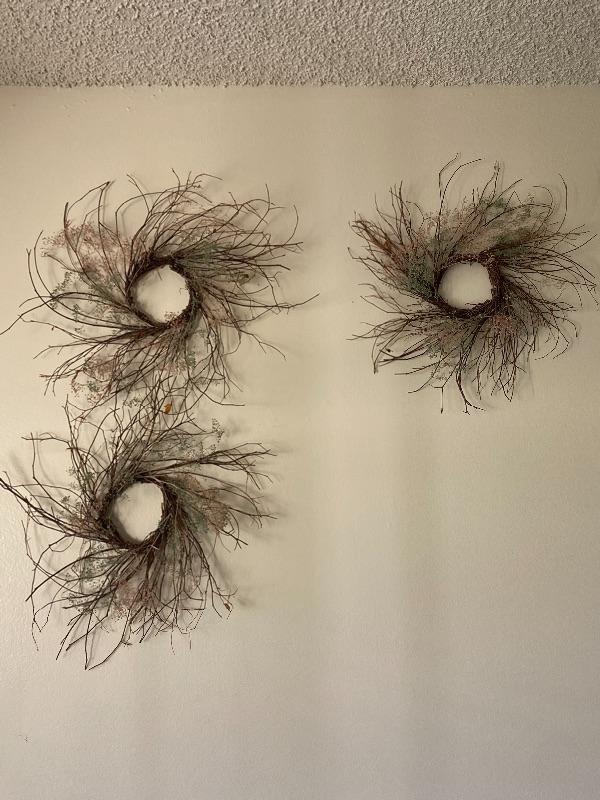 Set of 3 wrapped twig wreathes. Great as is or use in a project. Painted babys breath mixed in.