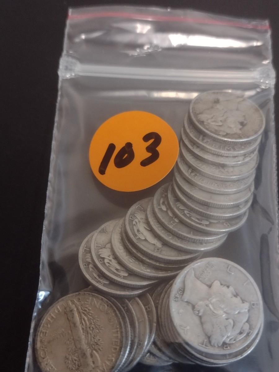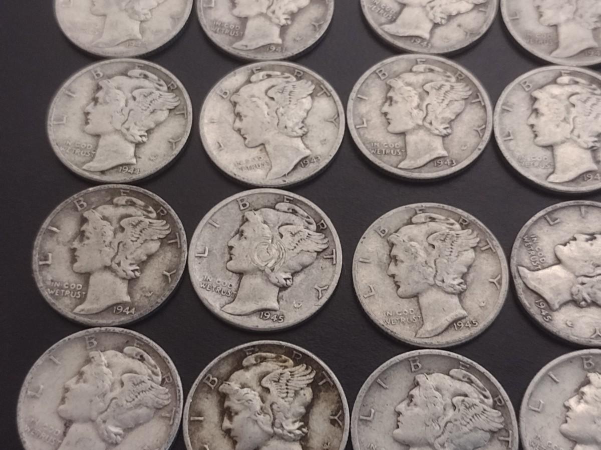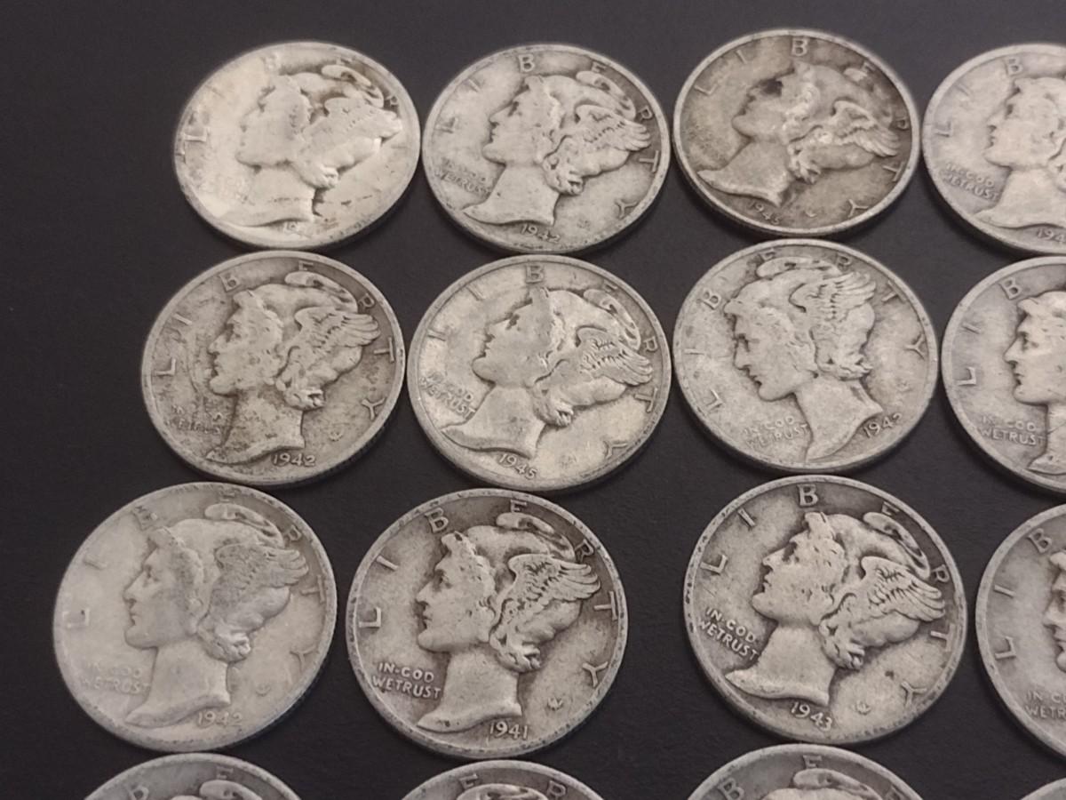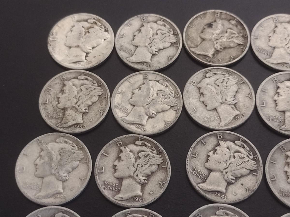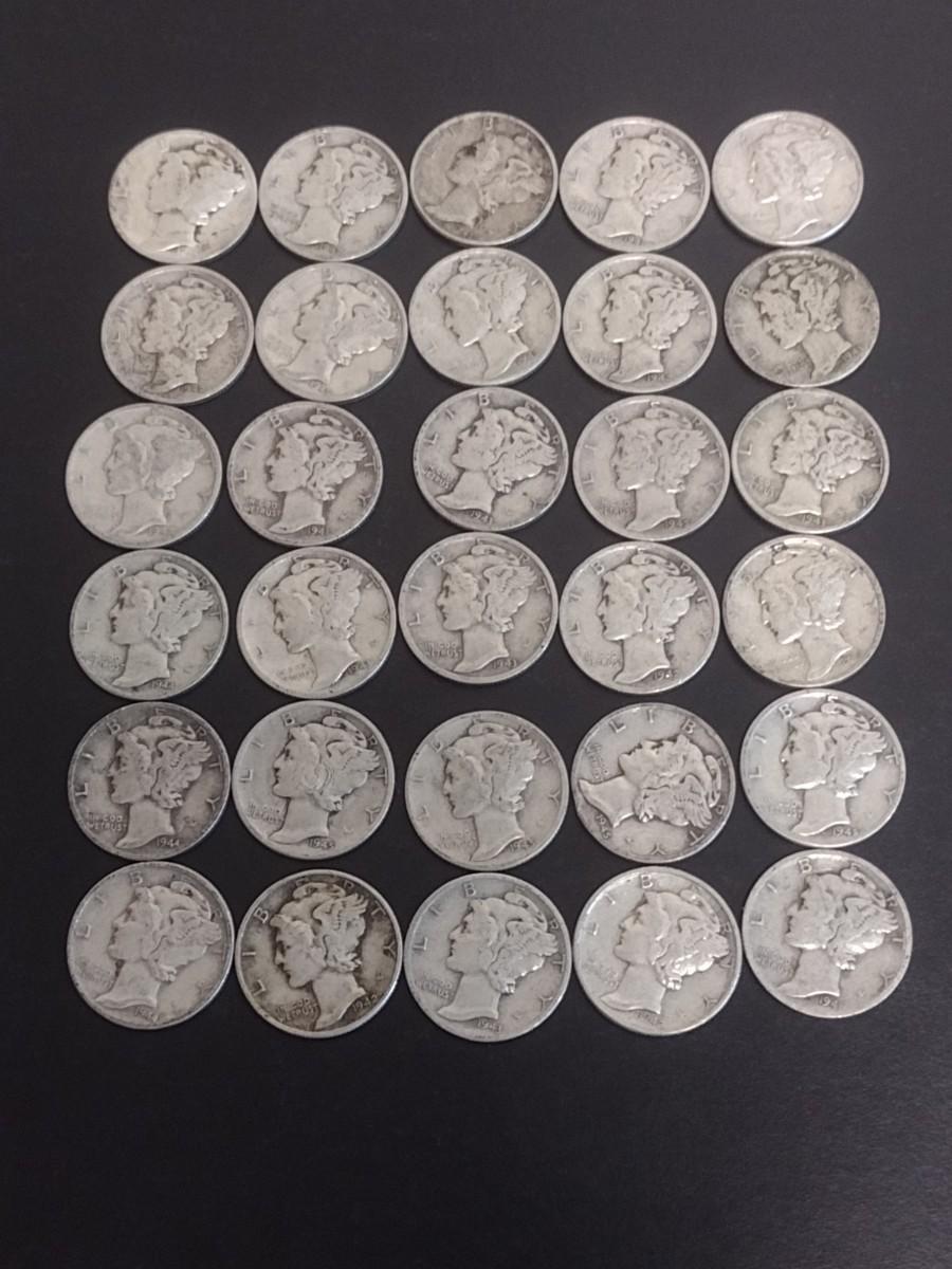 Set of 30 1940's U.S. Mercury Head Silver Dimes Circulated (#103)