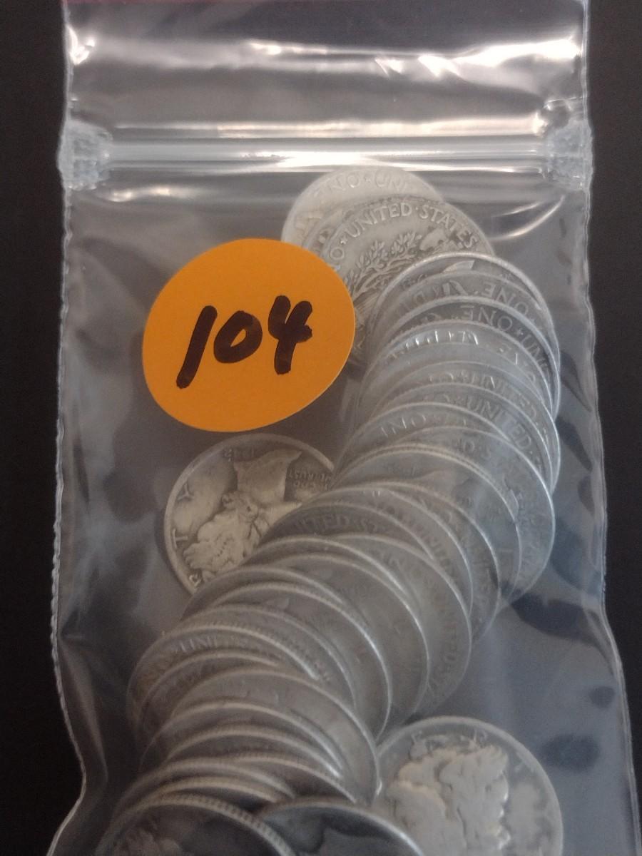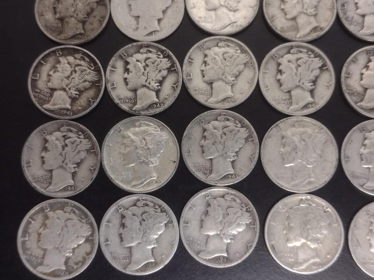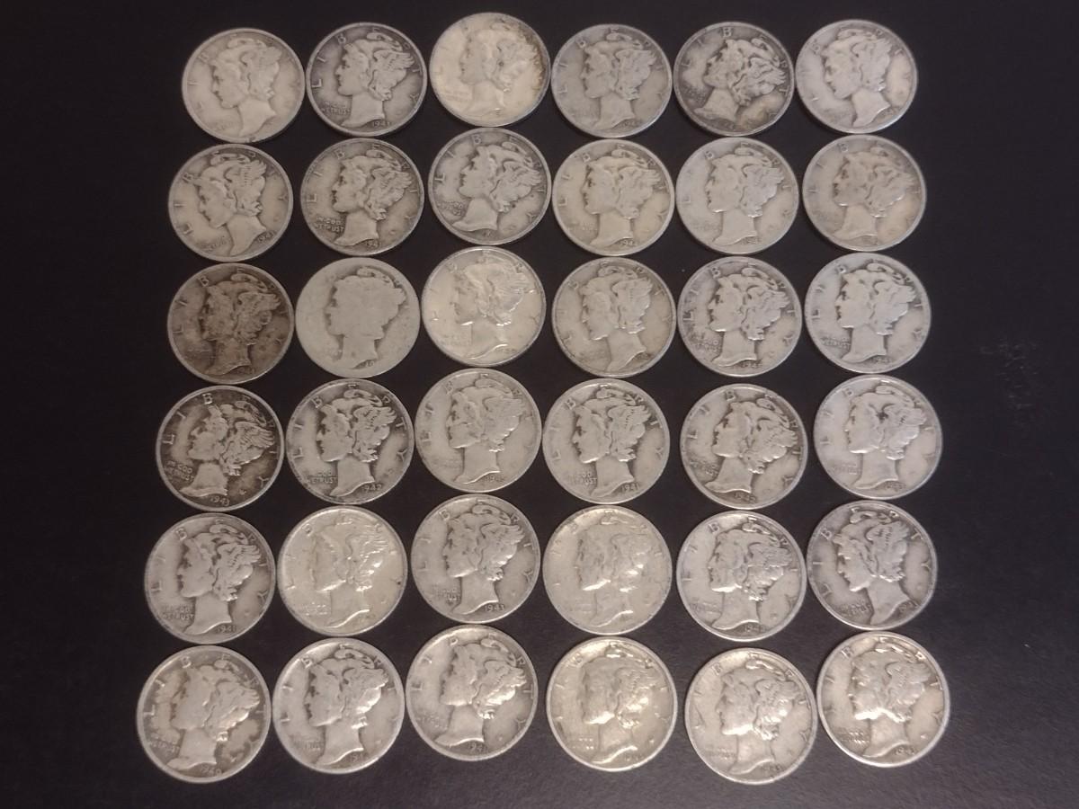 Set of 36 1940's U.S. Mercury Head Silver Dimes Circulated (#104)