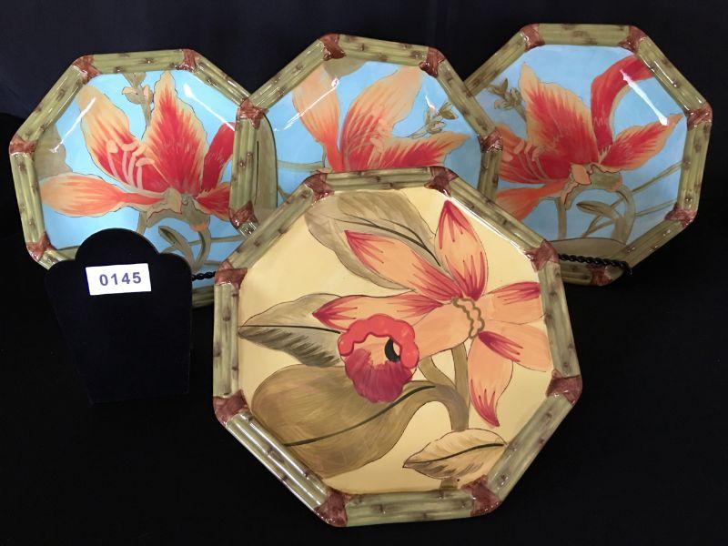 Set of 4 "Amazon" 9" Hexagonal Salad Plates Dishwasher/ Microwave Sage lot 145