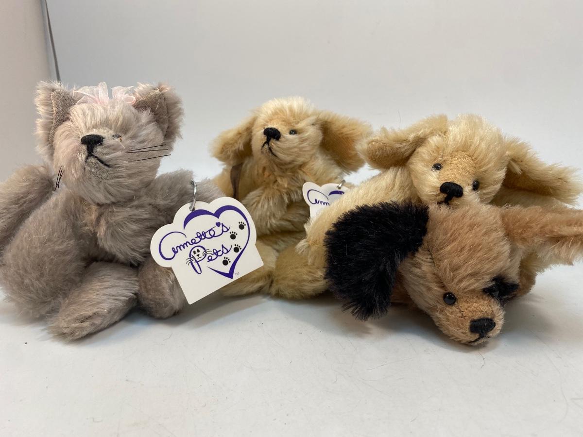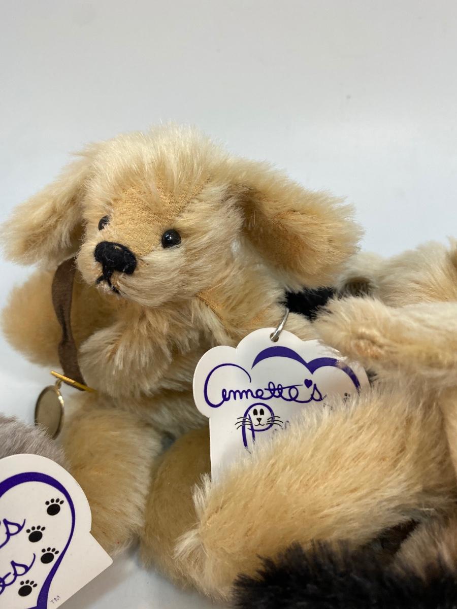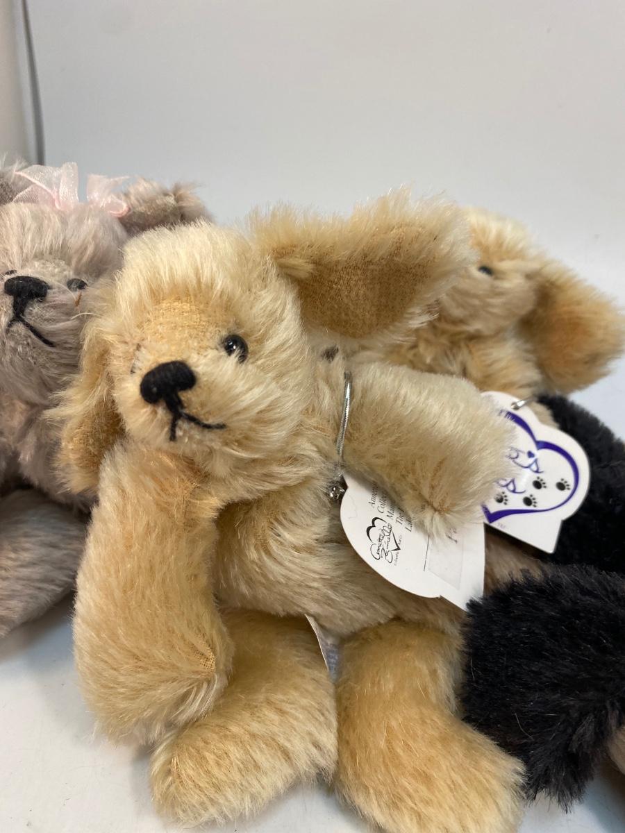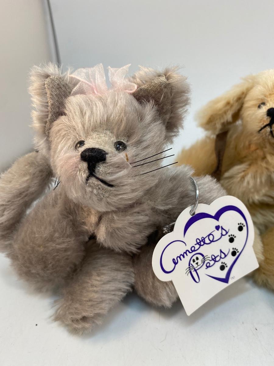 Set of 4 Annette’s Pets Small Plush Stuffed Animals Annette Funicello Collectible Bear Co. Two are identical and three still have hang tag attached. About the size of a beanie baby.