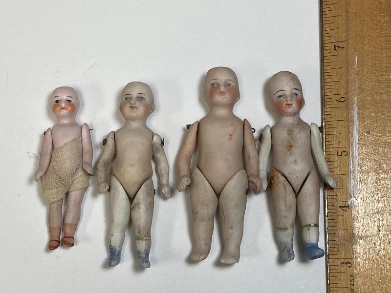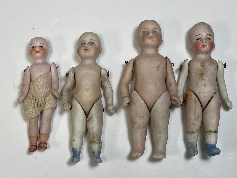 Set of 4 Antique Bisque Jointed Dollhouse Dolls YD#020-1220-00716
