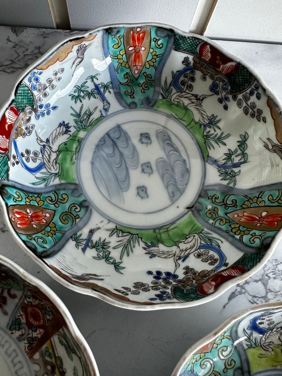 Set of 4 Antique Japanese Imari Bowl Meiji Scalloped Dish Circa 1800’s 8”Diam. 2”Deep