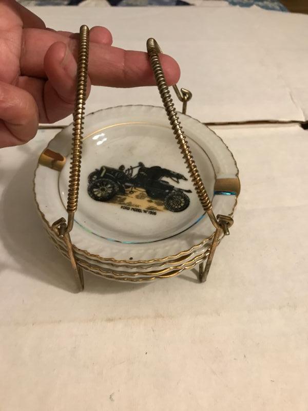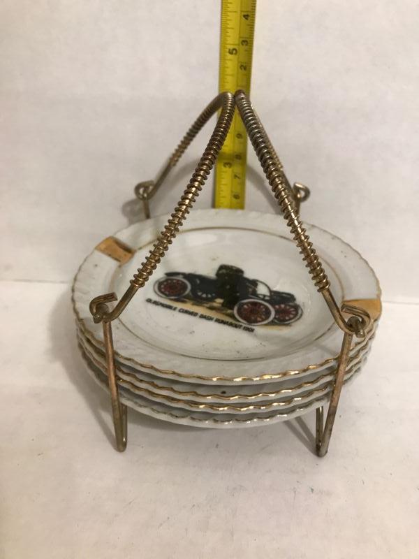 Set of 4 Ashtrays w/ Holder FORD CADILLAC OLDSMOBILE BUICK